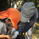 ・地域のおじいちゃんおばあちゃんに、サワガニの持ち方、捕り方を教わりながら、楽しく触れ合ってほしい。