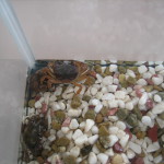 クラス毎、サワガニをバケツに入れて、保育園に持ち帰って来ました。