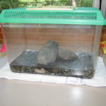 ・保育園に帰ってから、「飼育箱に入れて、エサをあげたら、素早くエサをとってまた石の下にもぐって行ったよ。」(保育士がエサを飼育箱に入れようとしただけで匂いに反応してか、すばやくサワガニが出てきてエサを持ちながらまた、石や砂利の下に隠れるのを子ども達は興味深そうに見ていました。)