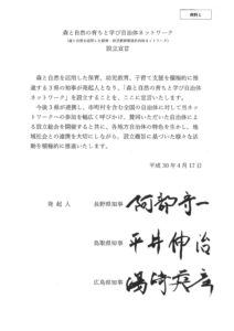2018.05.27 【資料1】森と自然の育ちと学び自治体ネットワーク設立宣言書(知事署名入り)