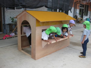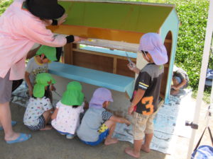 保育キーパーさんにおうちの原型をつくってもらい大喜びでした。