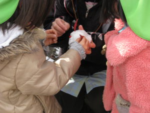 「赤い耳も緑の耳もかわいいね」と、みんなで見合いっこしました。