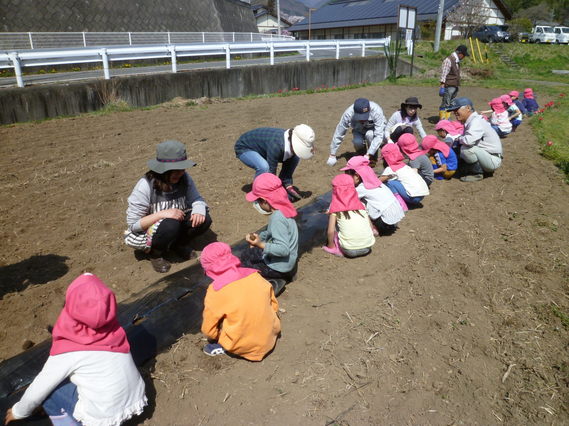 初夏を思わせるような良いお天気の中、じゃがいも植えをしたよ♪