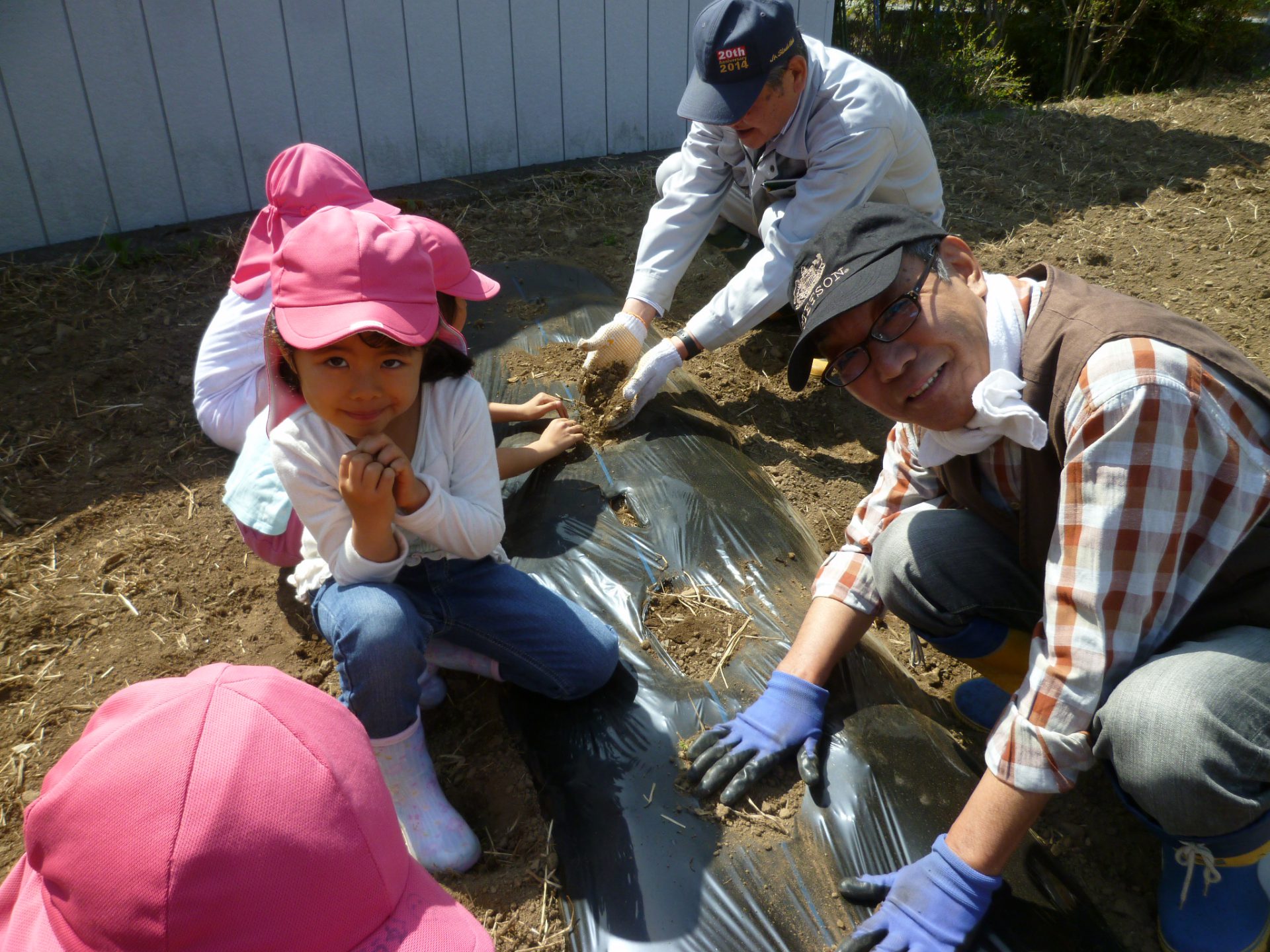 4月は年長児が祖父母の方と一緒にじゃがいもの種を植えました。