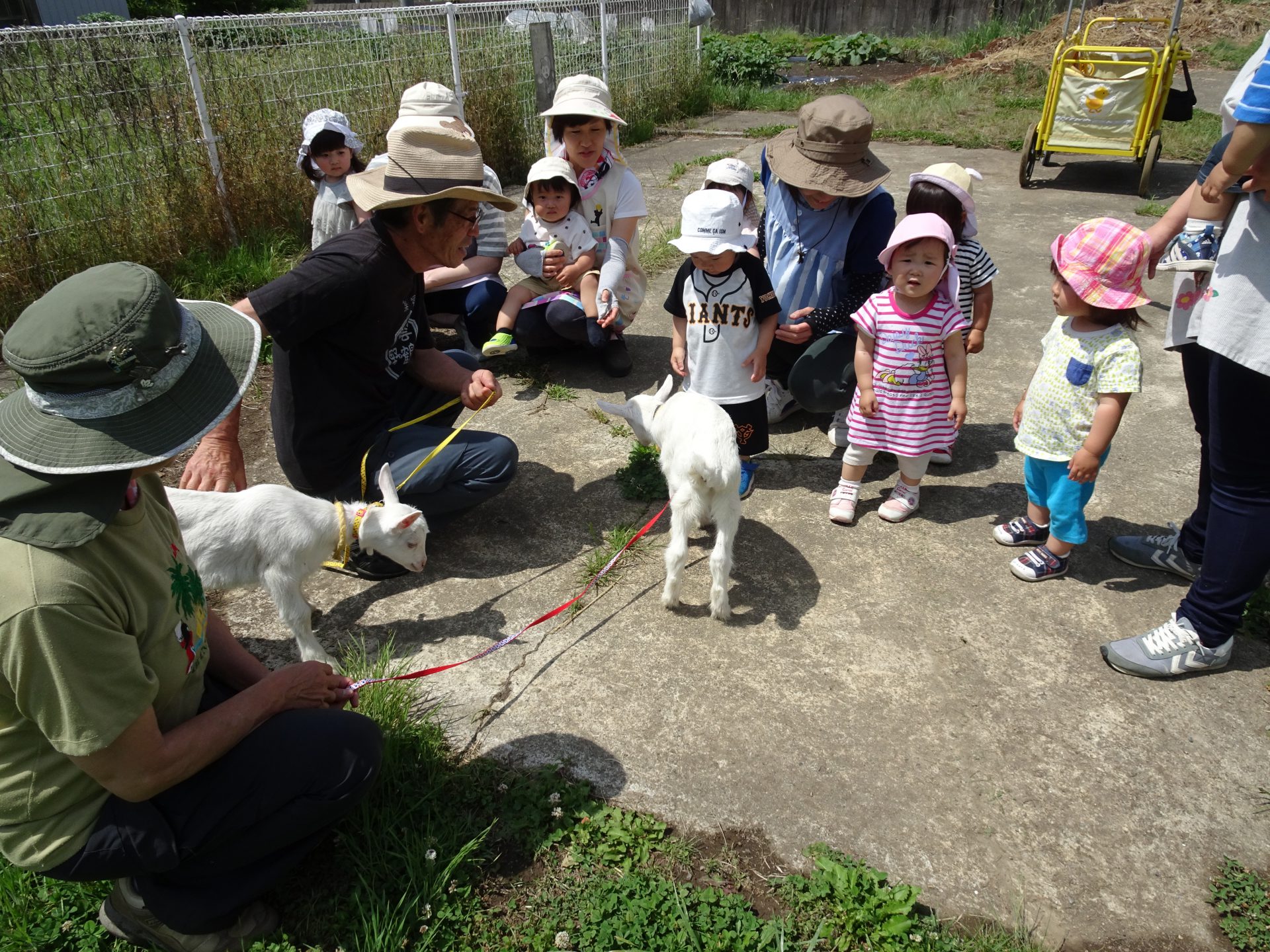 「みんなぁ。今日はあおきっ子広場にヤギさんが来るよ!!」と保育士が声を掛けると
