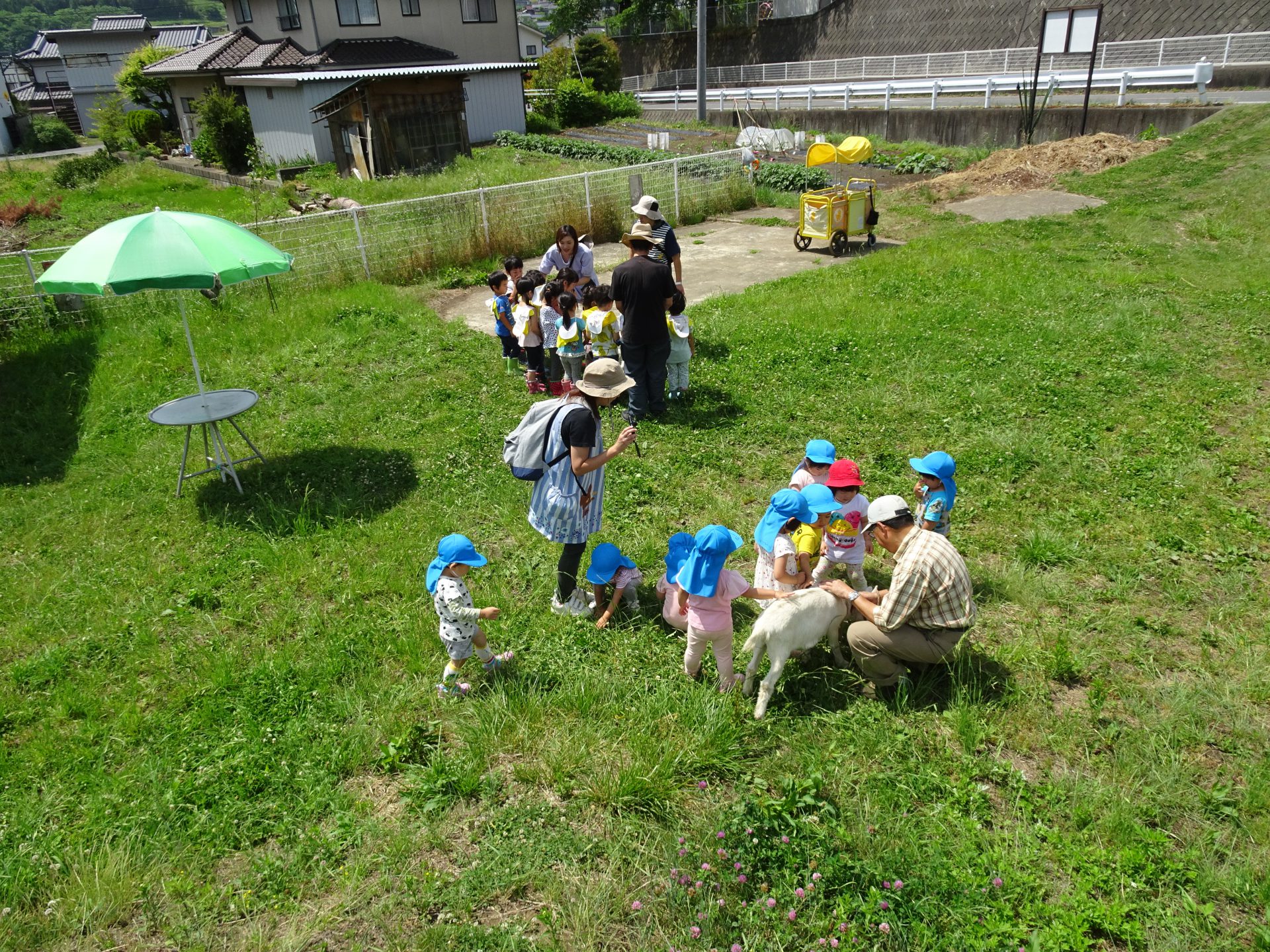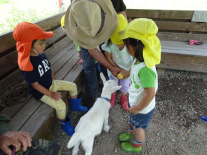 「ヤギさん、おいで。おいで。」 「かわいいよね~。」~年長児~