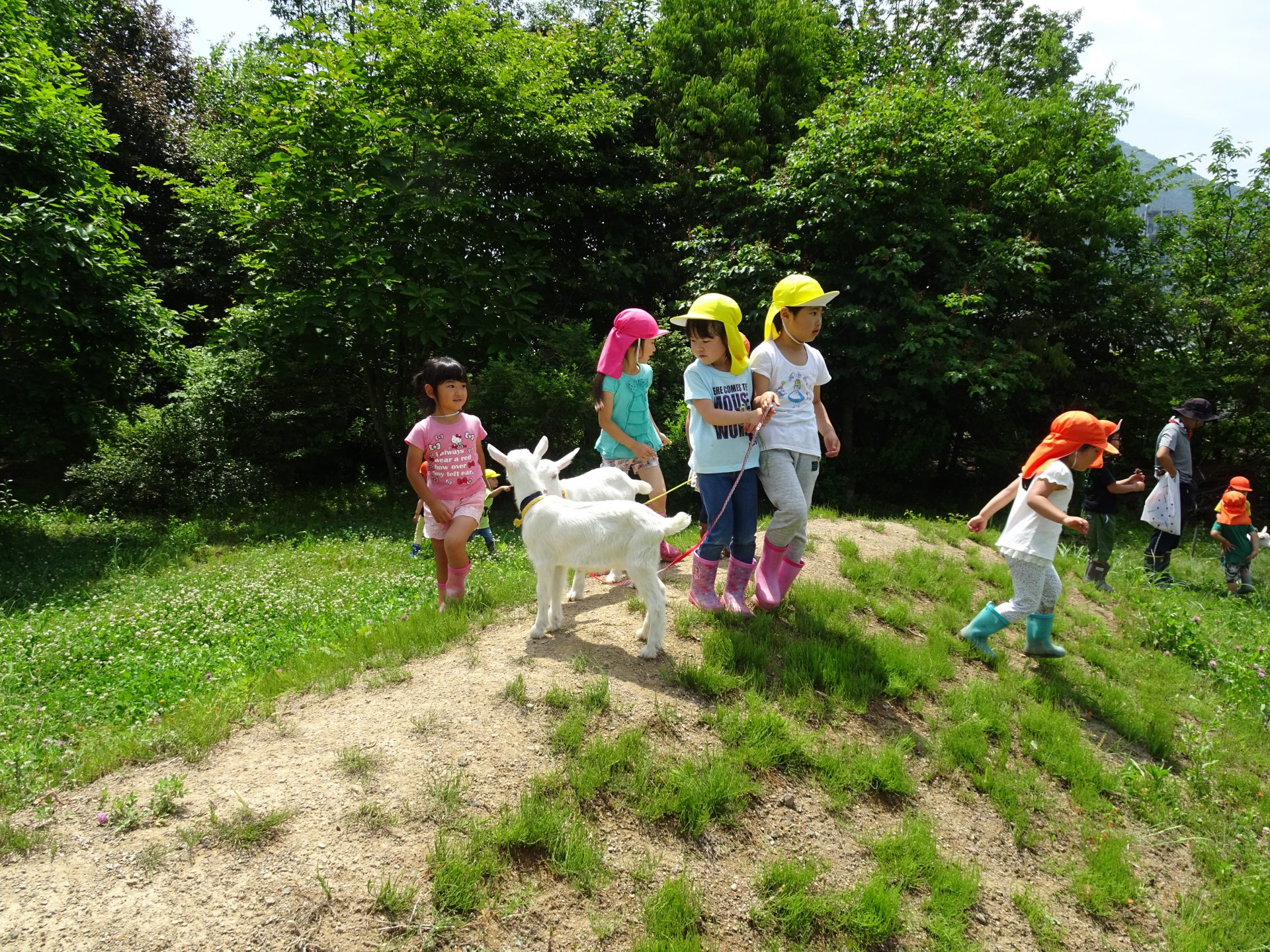暑さも忘れ、かわいい子ヤギ達と沢山たわむれて触れ合いを楽しんできました。