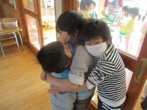 まだまだお手伝いができると年少児も大喜びで、張り切って手伝います。