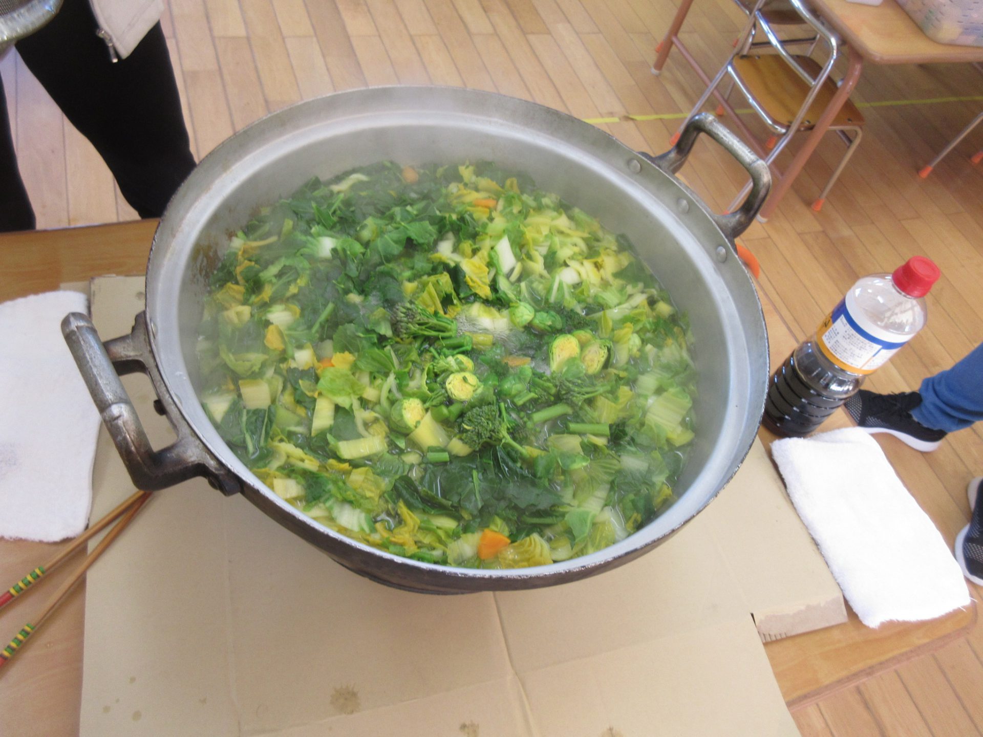 切れた野菜は給食先生に預けて、仕上げをしてもらいます。