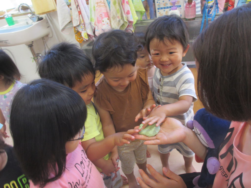 見学に来た小さい子達も触ってみました(^^♪ 「きもちいい~」「冷たい!」 最初は「くさい~」と言っていた2歳のAちゃん 触っているうちに「くさくないよ!」と。 自分で触ってみると大丈夫になるんだね💛