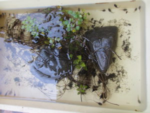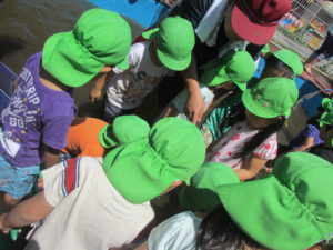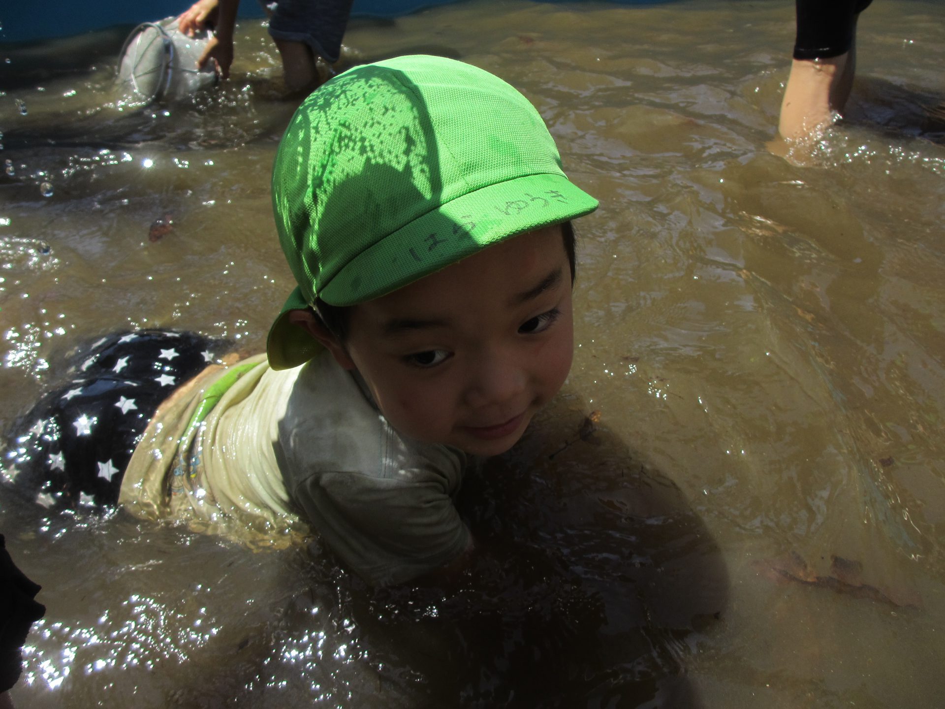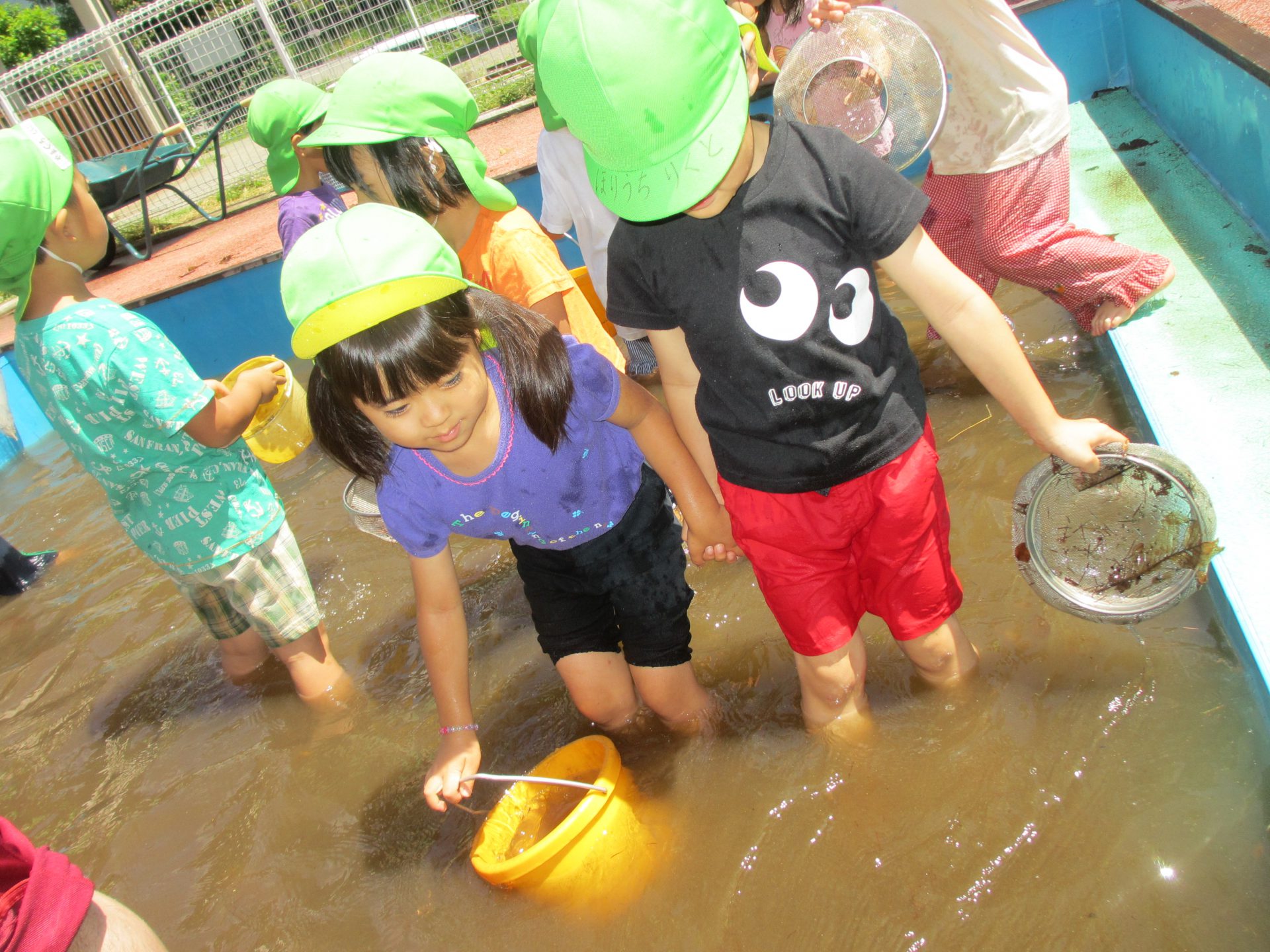 そうなのです!西箕輪の栄養豊富なプールの水の中には小さな生き物がたくさん住んでいるのでした 「 速くて捕まらないよ!!」 「なにか足にきたよ~」