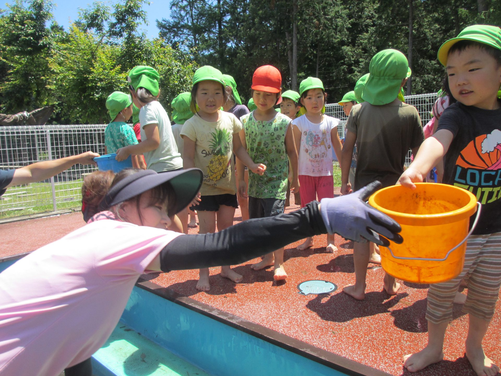 いよいよプールの季節が来ました!毎年年長さんがプール掃除をしてくれます!! まずは恒例のお楽しみ (゜゜)~