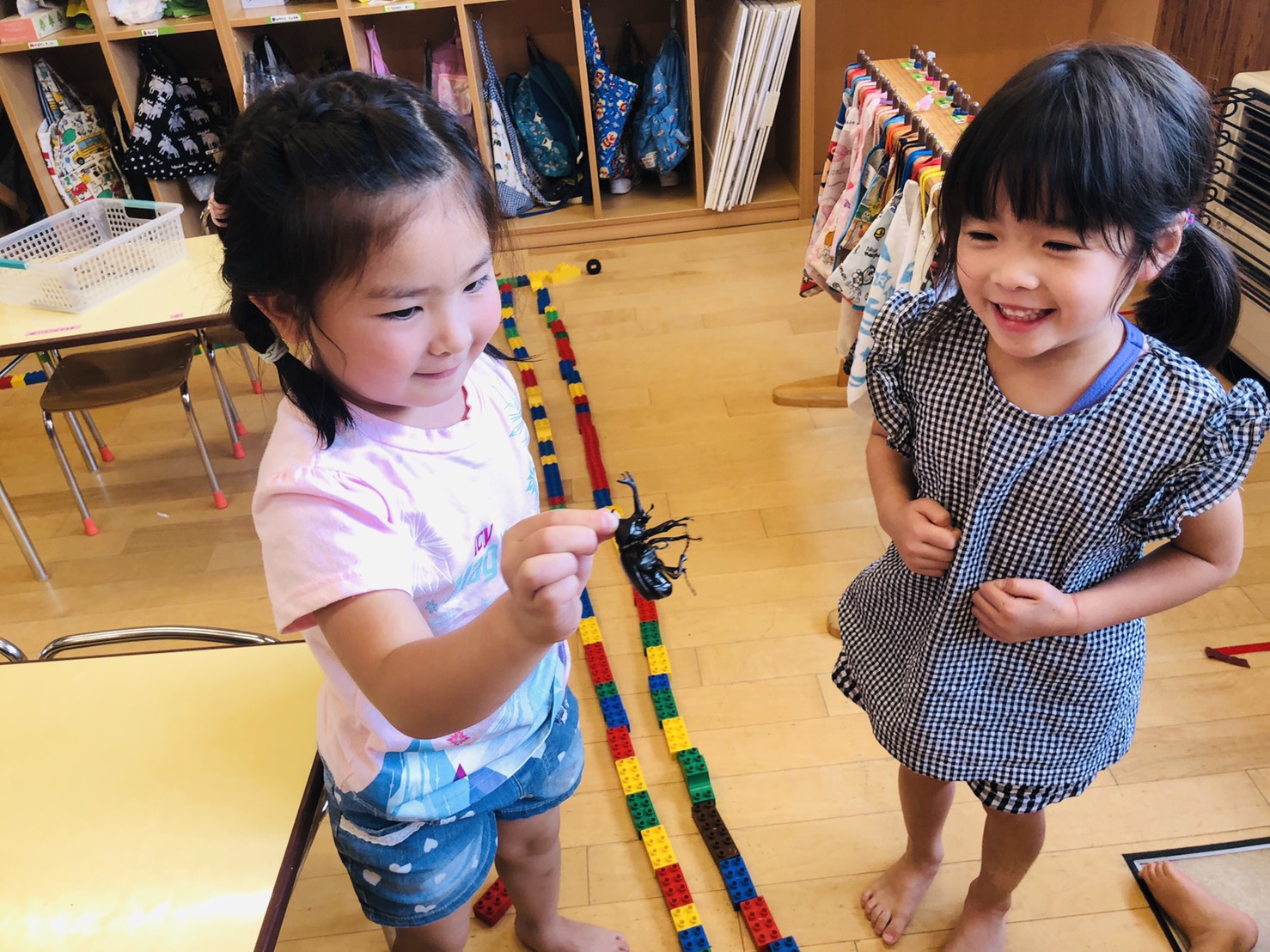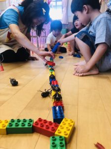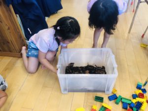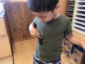 年中さんがケースに入れて観察しています。