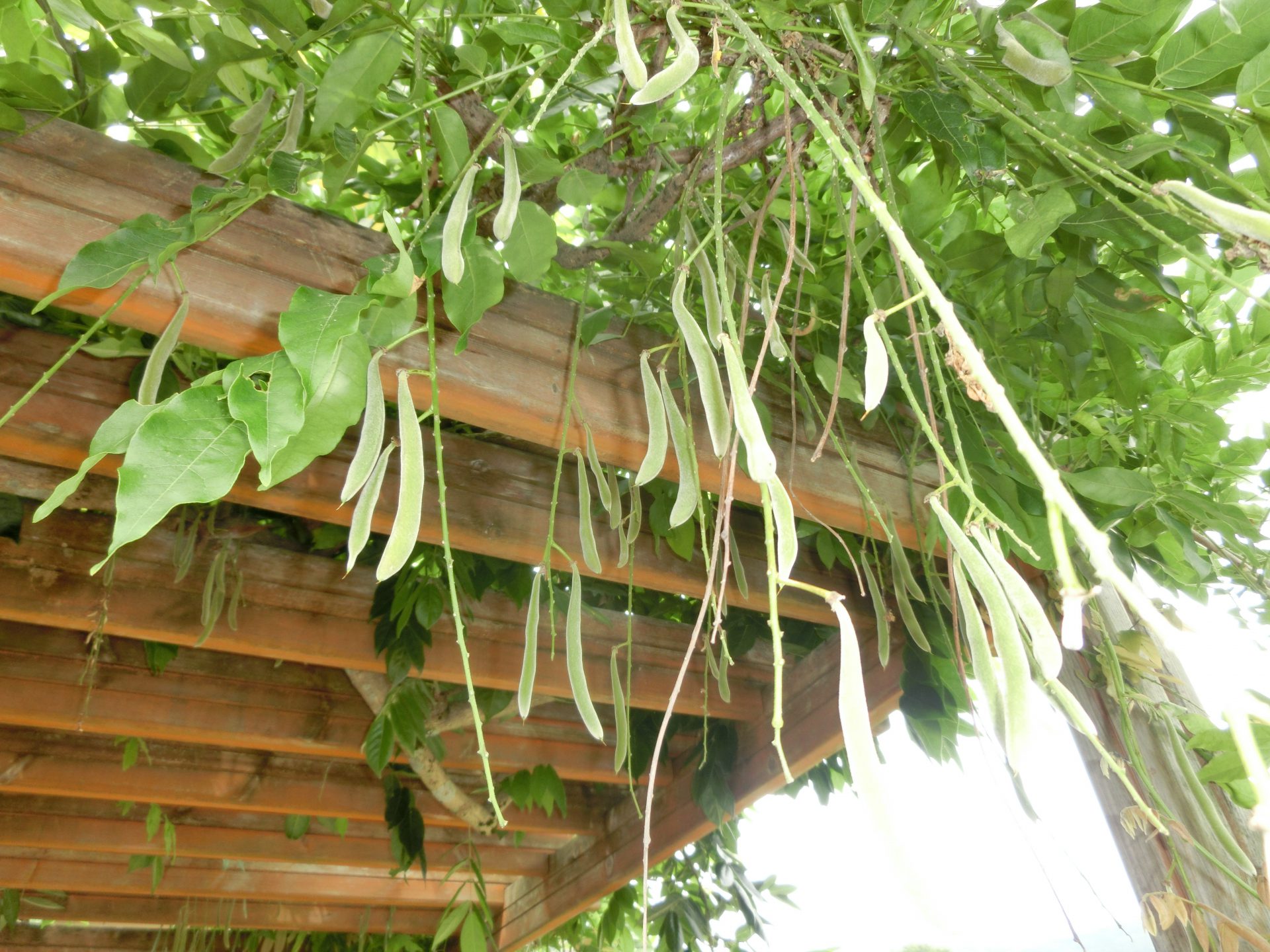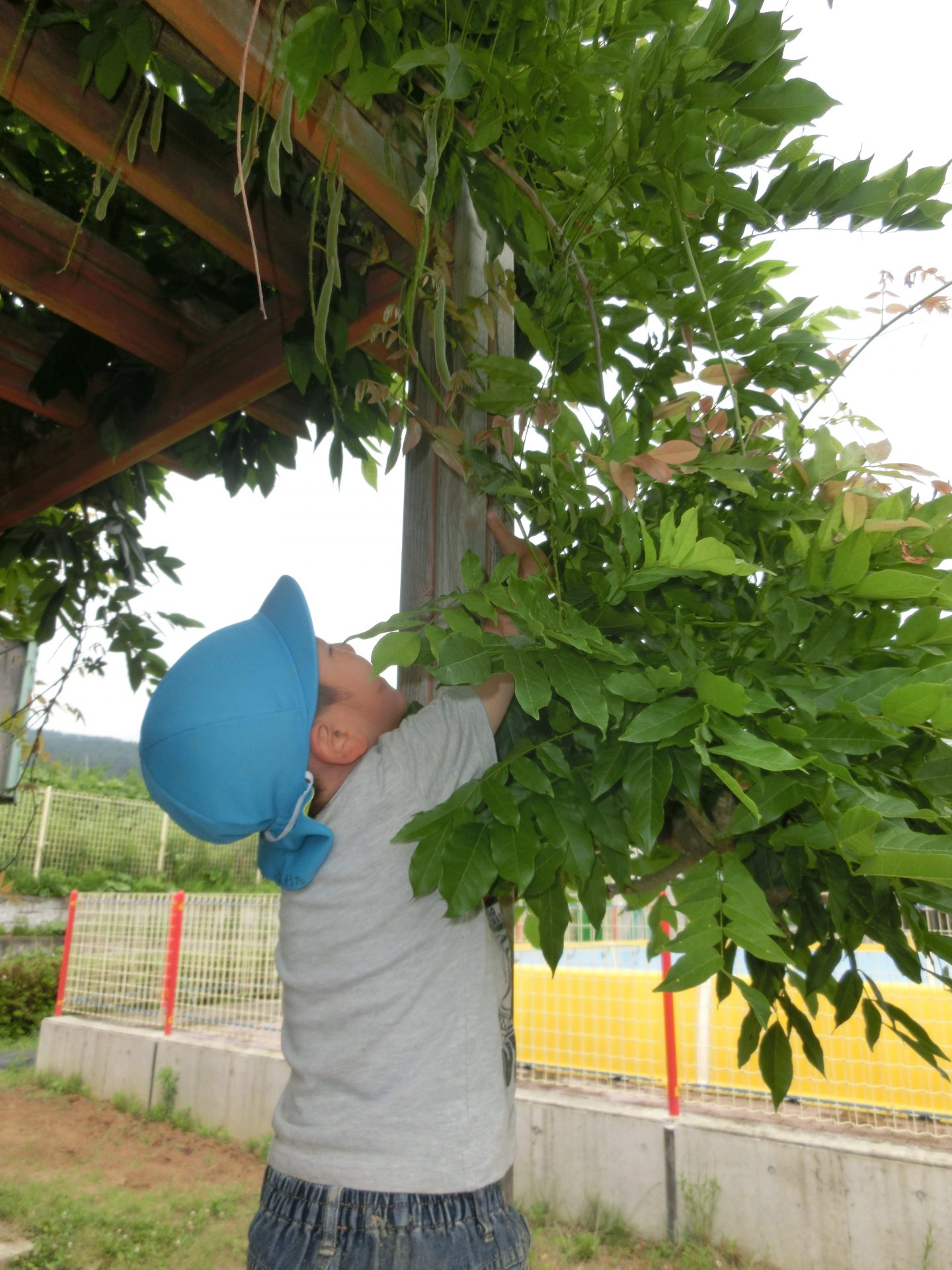 今年も園庭の藤棚にさやがいっぱいつきました。