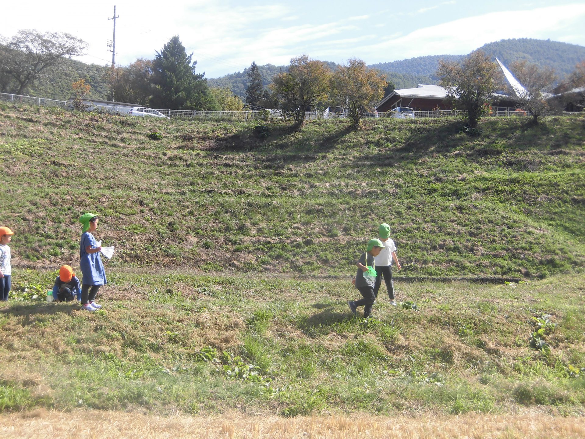 土手を登って保育園に帰ってきました。 結構きつい勾配なので、泣いてしまう年少さんもいました。 大丈夫だよ。落ちないように見ていてあげるから、がんばってね。
