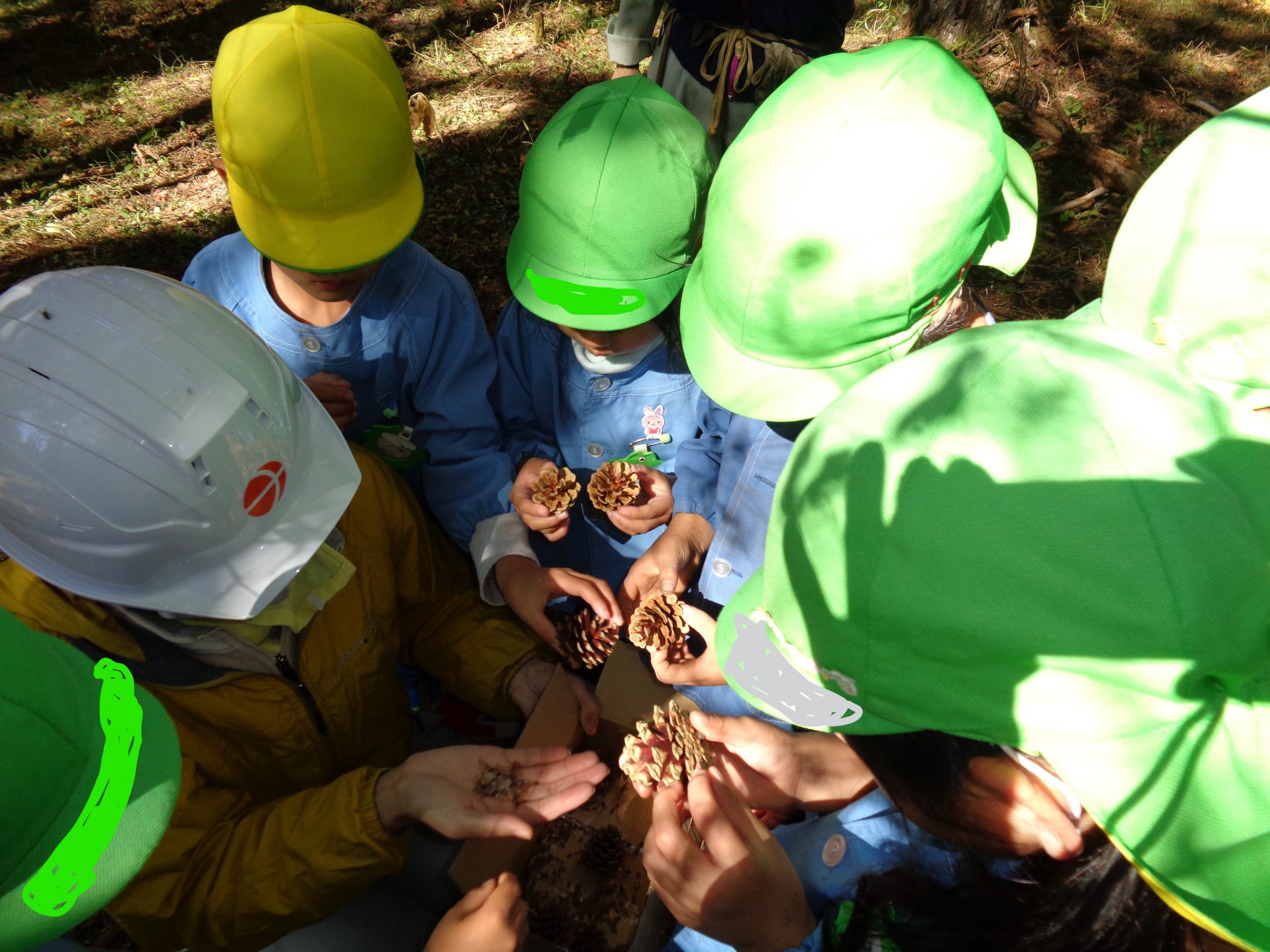 最後に、赤松の松ぼっくりを見せてもらい、落とすとクルクル回ることを教えて