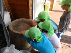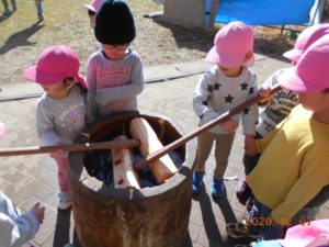 年長さんが臼や杵を出す手伝いをしてくれました。