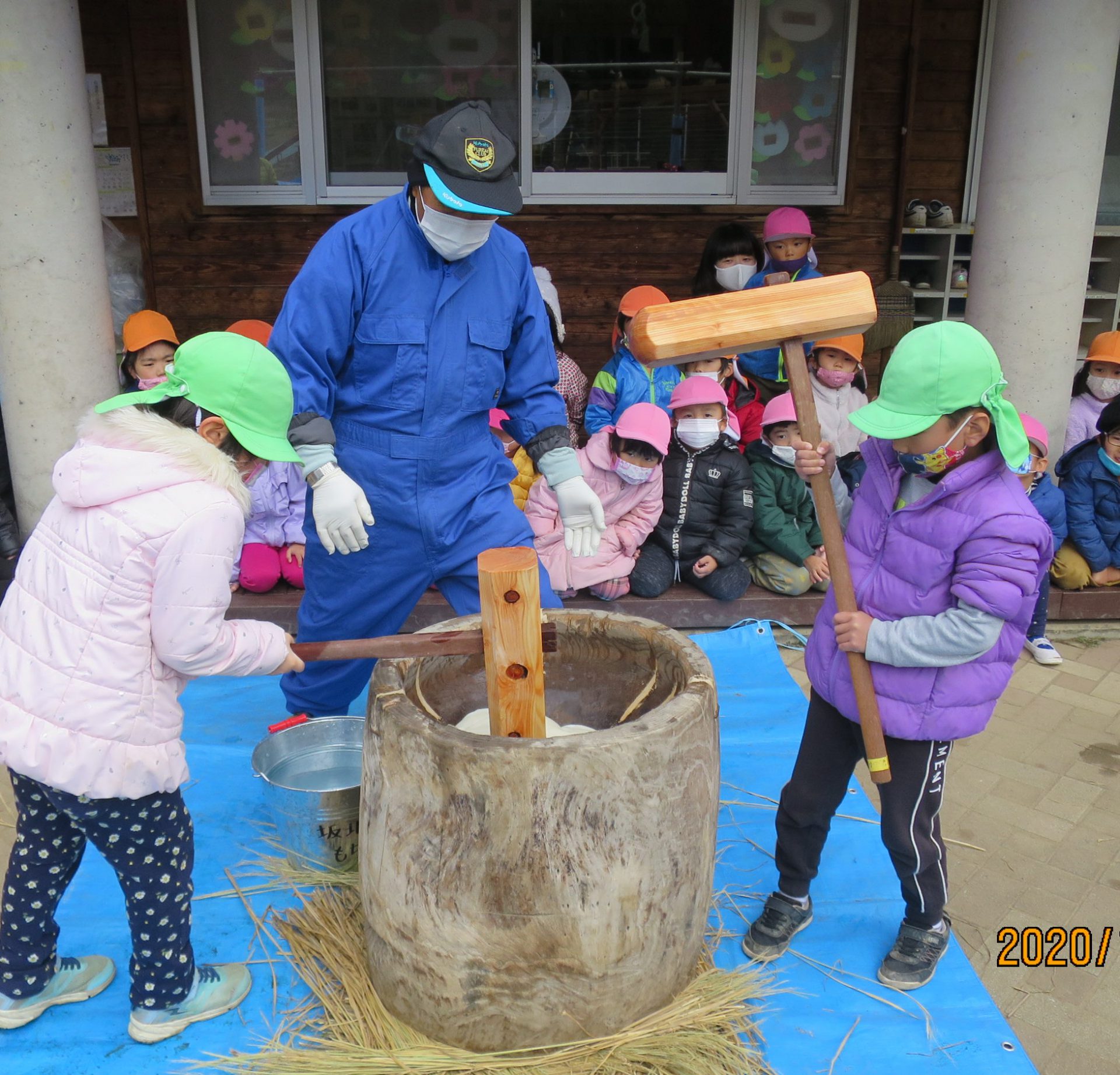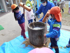 もちつきは、地域の方の協力のもと力いっぱいつきました。