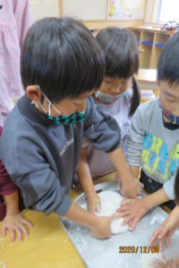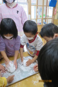 年長さんは正月飾りの ❝鏡餅作り❞ に挑戦しました。