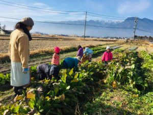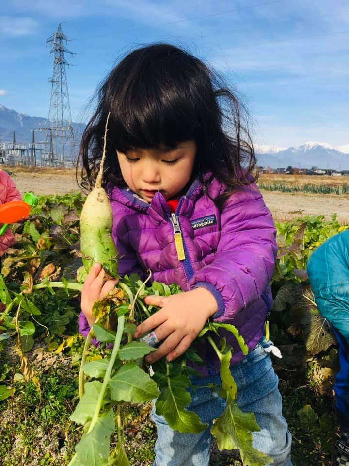 先週は、畑に野沢菜と大根、人参を収穫しに行きました。今年は、大豊作で、みんな次から次へと手足を動かし、喜びいっぱいの収穫です!おひさまの子供達は、本当によく働きます🌞