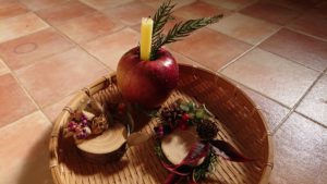 この日のために、おひさまのお庭や子どもたちとお散歩しながら、少しずつ集めた木の実の飾り。