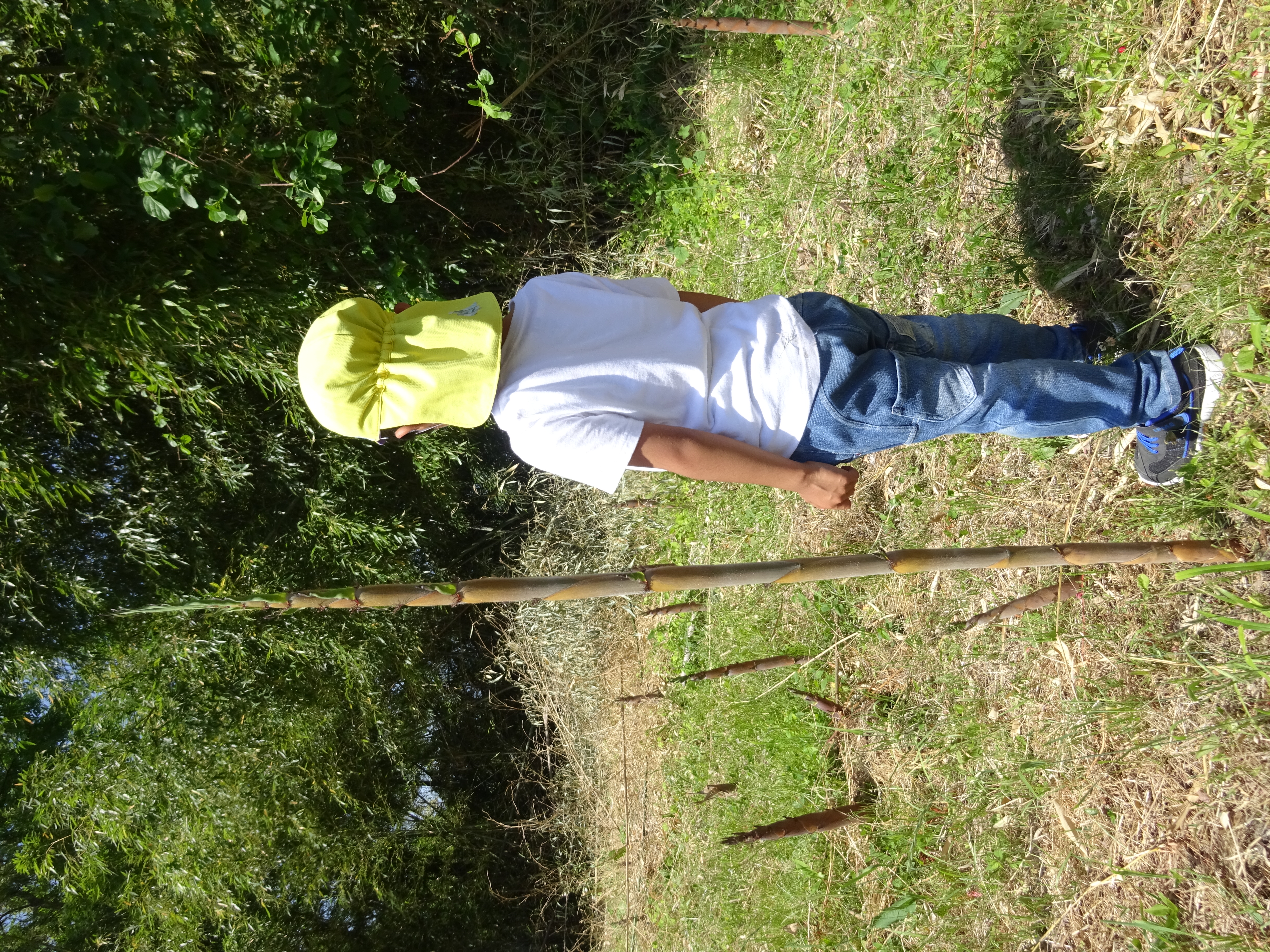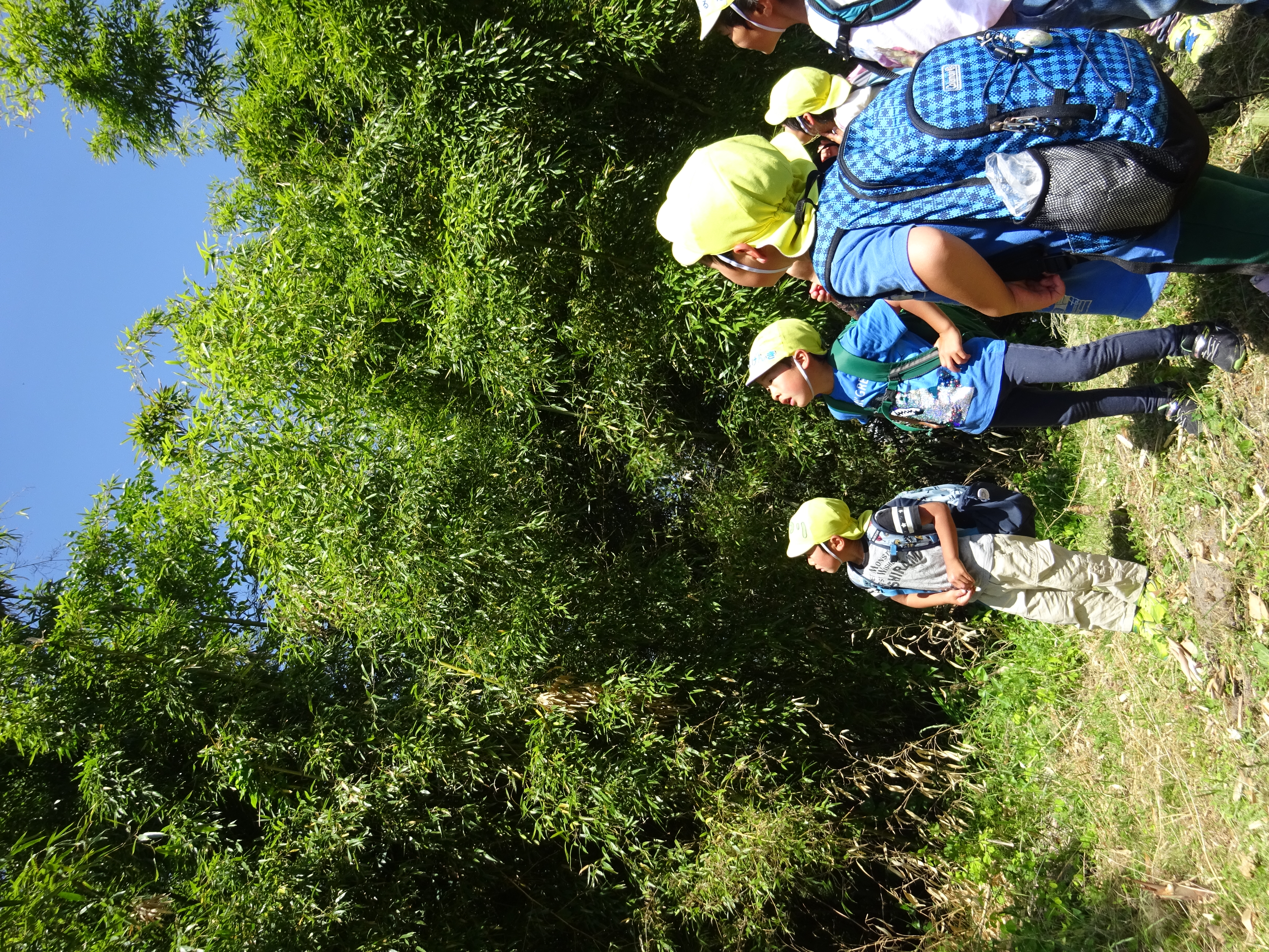 近くに、大きな竹を発見っ!! 「今日採った、たけのこが大きくなると、七夕に飾り付ける竹になるんだよ」