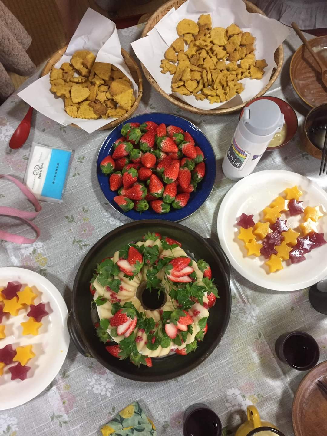 2学期の制作発表や教師からの手遊びや演奏、保護者からのお歌🎶そして、第二部はお母さん達が用意してくれたお食事会✨と盛りだくさんなクリスマス会となりました。