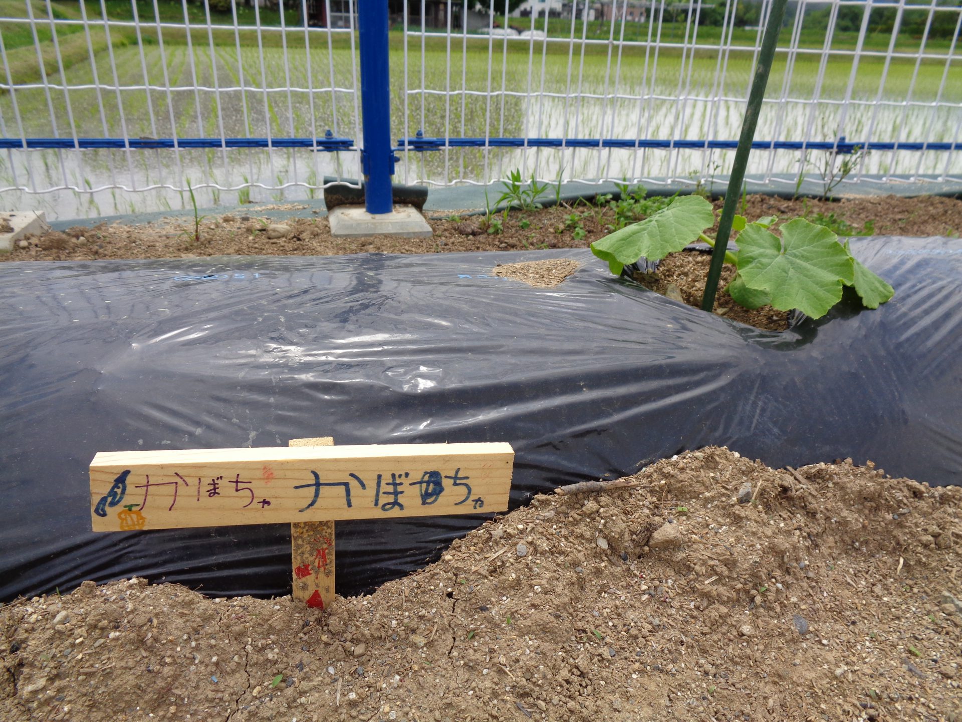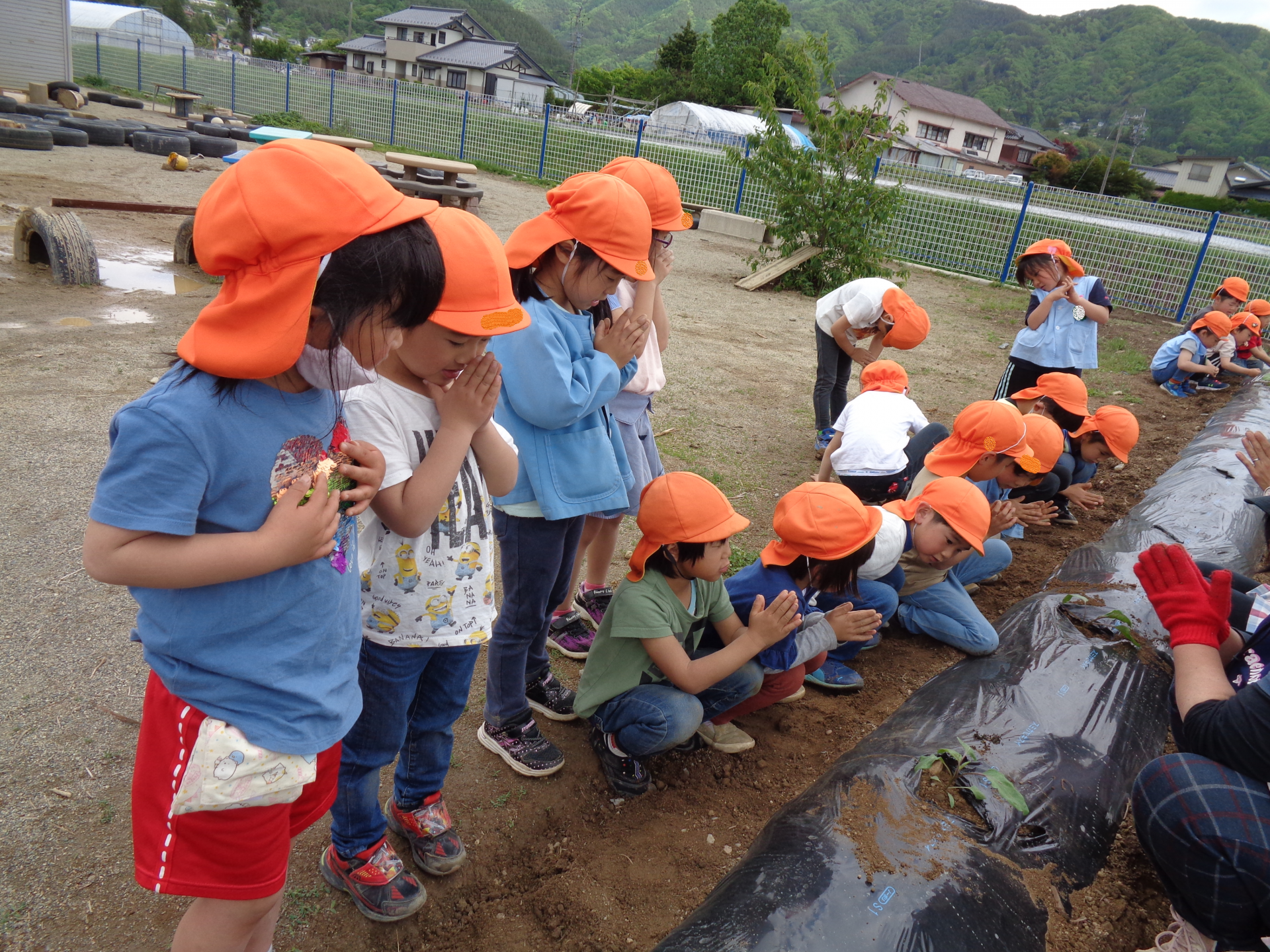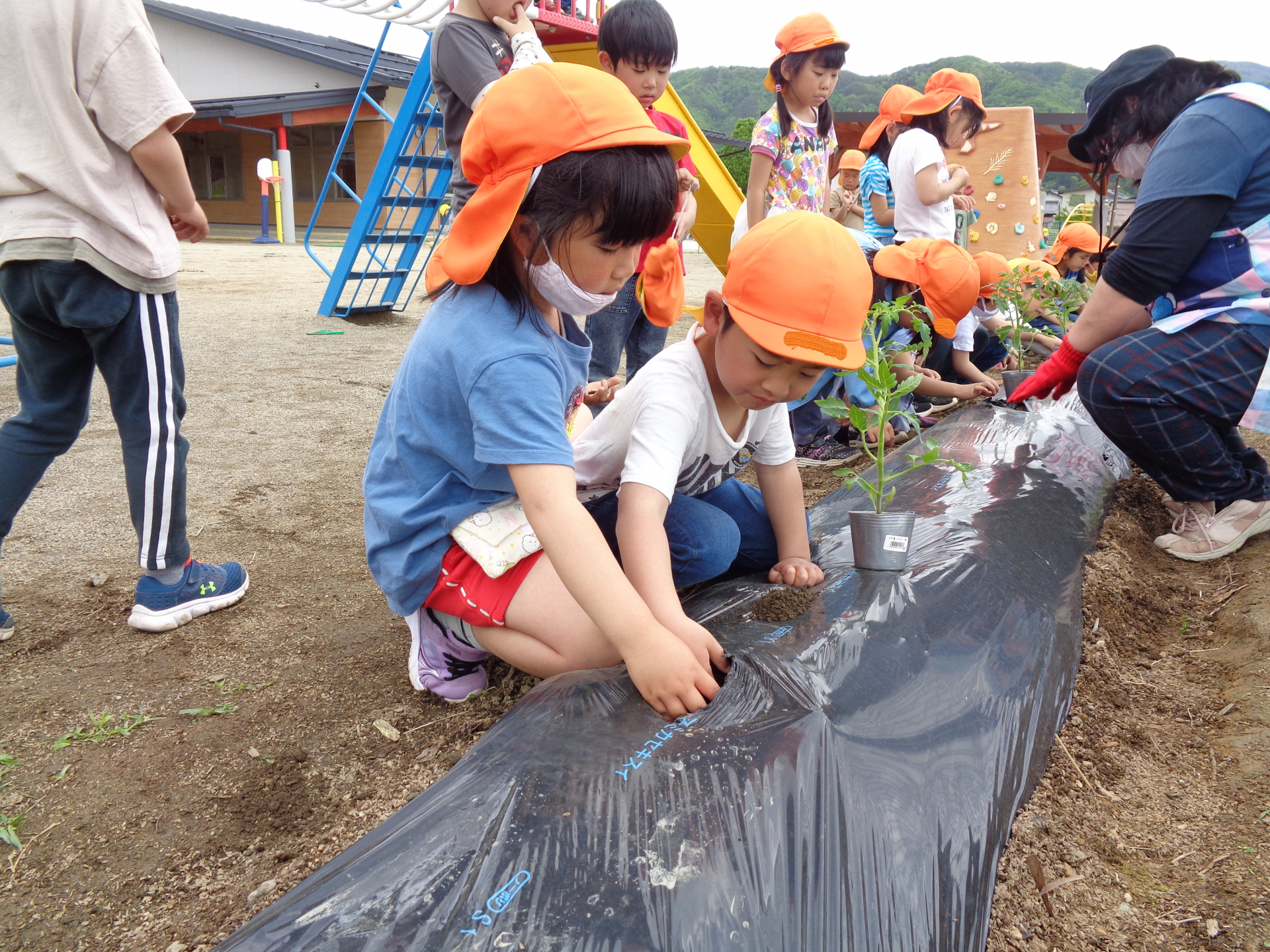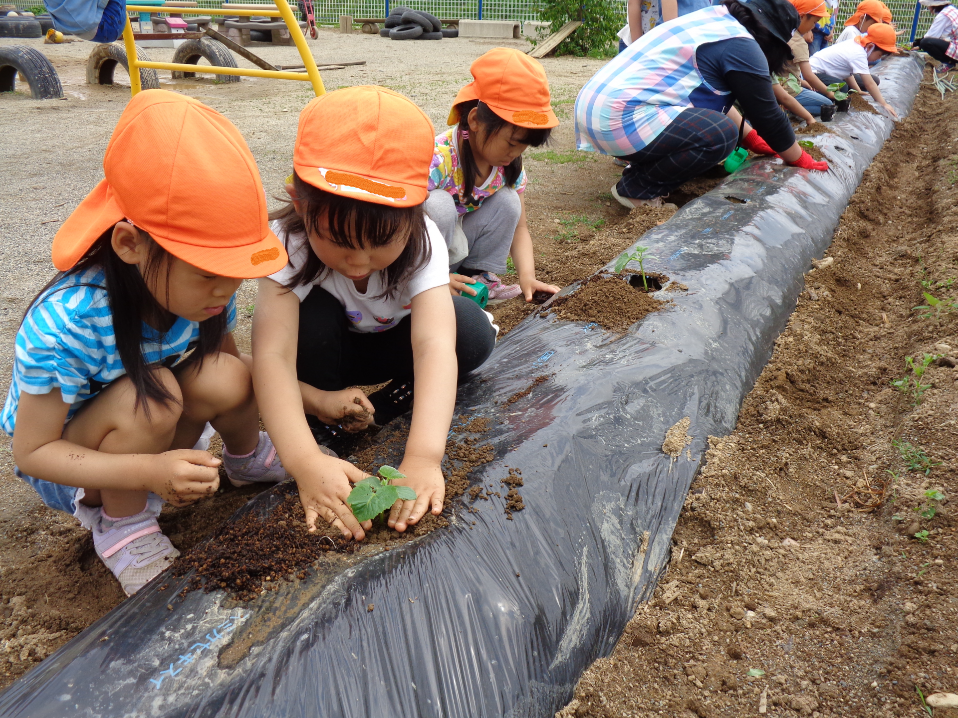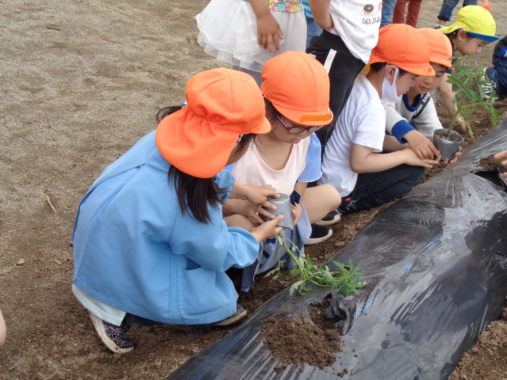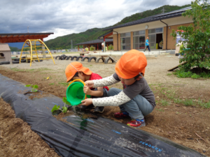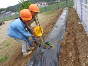 苗が倒れないようによく考えながら・・・お友だちと相談しながらやっています。