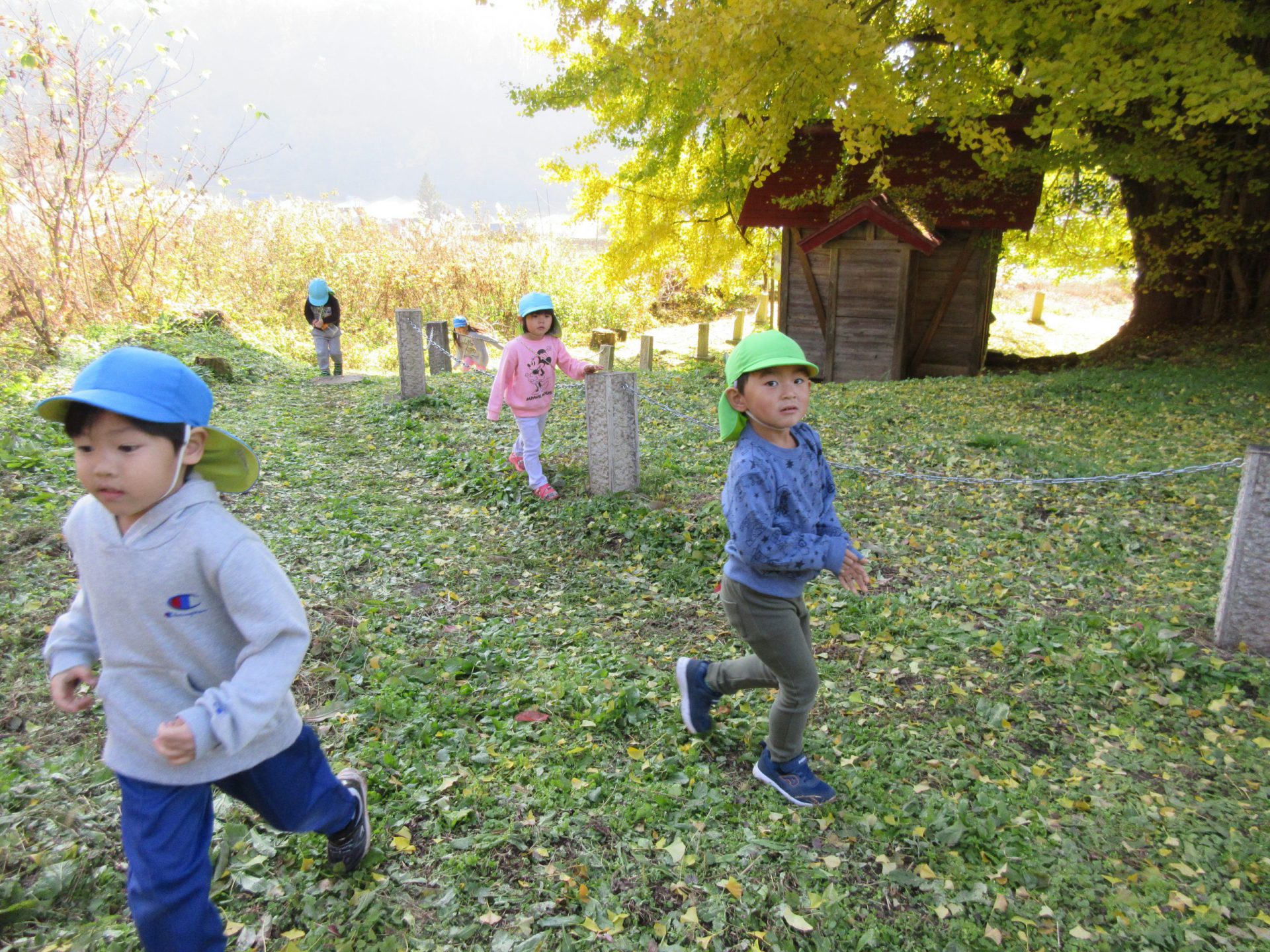 きいろいはっぱきれいだなあ。走るときもちいいよう!