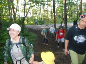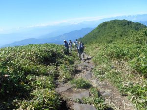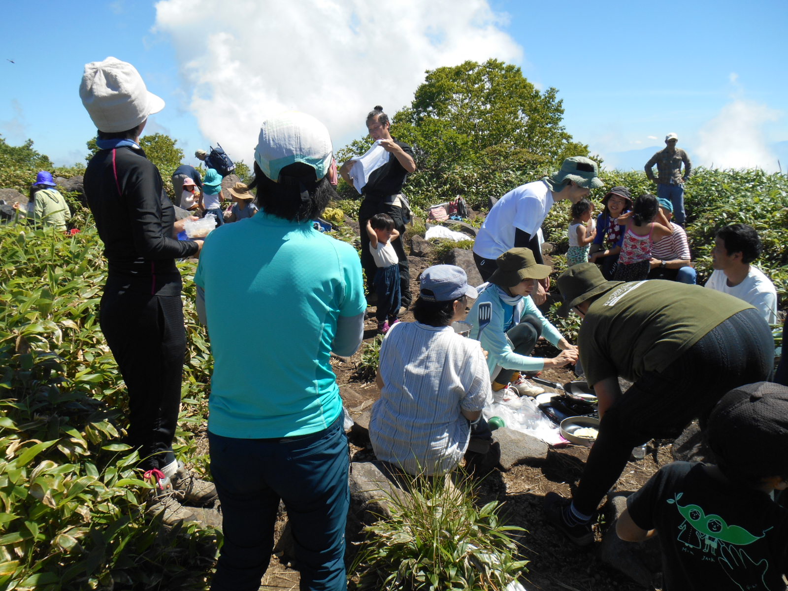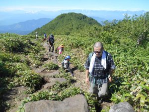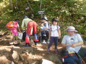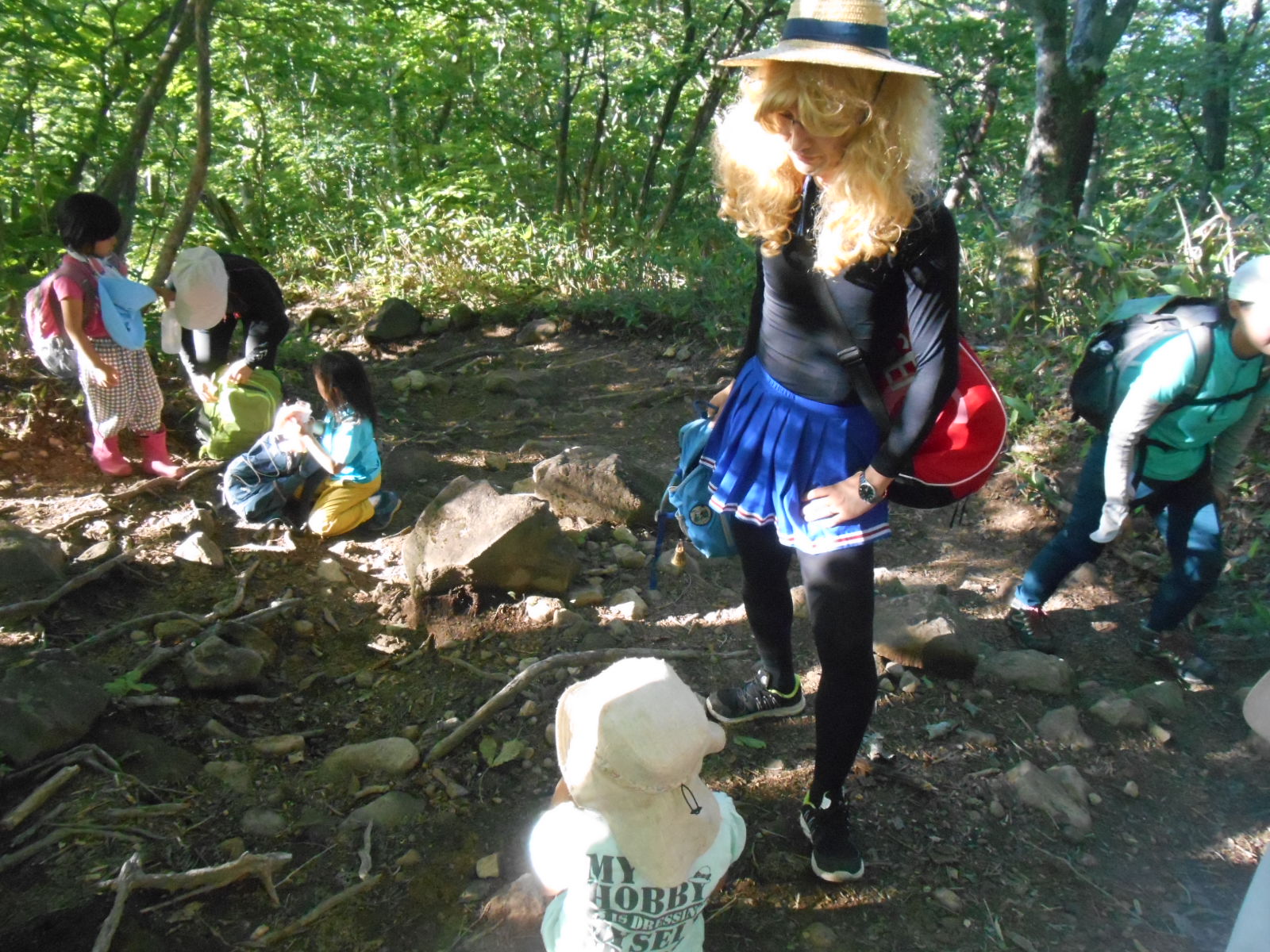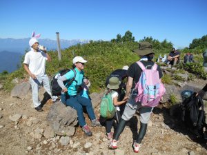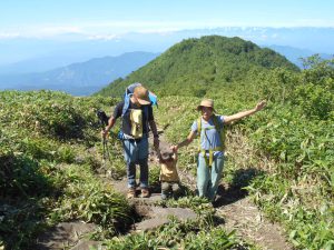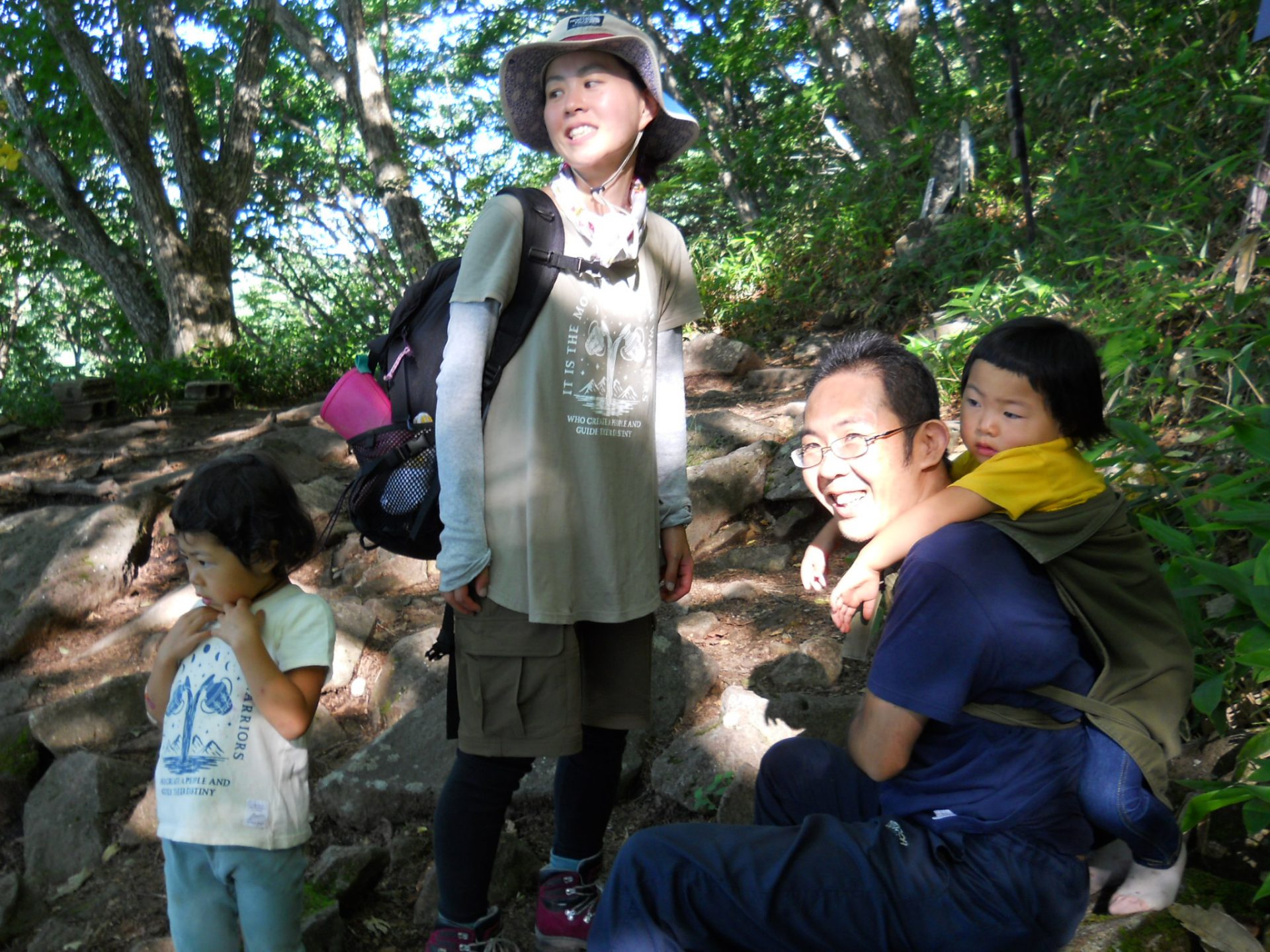 2年ぶりの親子登山。今回は 飯綱山を選択。朝6時集合。未満児から年長児まで親子で挑む。標準タイム2時間30分を、3時間30分に設定して、年少児は おんぶ紐を持参し、スタート。登山が、嫌いにならないように、集団では無く、あくまでも家族のペースで登る。スタッフは 先頭 中盤 しんがりについて、励まし タイム内登山を励ます(雷雨などに備え)。五合目あたりから、富士山 浅間山 八ヶ岳などが見え、7合目の森林限界からは、北アルプス 白馬三山 槍ヶ岳 穂高連峰などもくっきり見える。頂上には 年長児などは 8時40分 最後の年少児は 9時半には登頂。持参したおにぎりを頬張り 登頂を味わった。持参した旗を中心に記念撮影。10時10分下山開始。無事最終の年少児は、午後1時下山。全員無事下山。