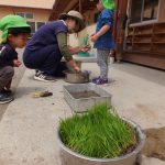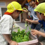 年中さんが植えた小松菜も大収穫!