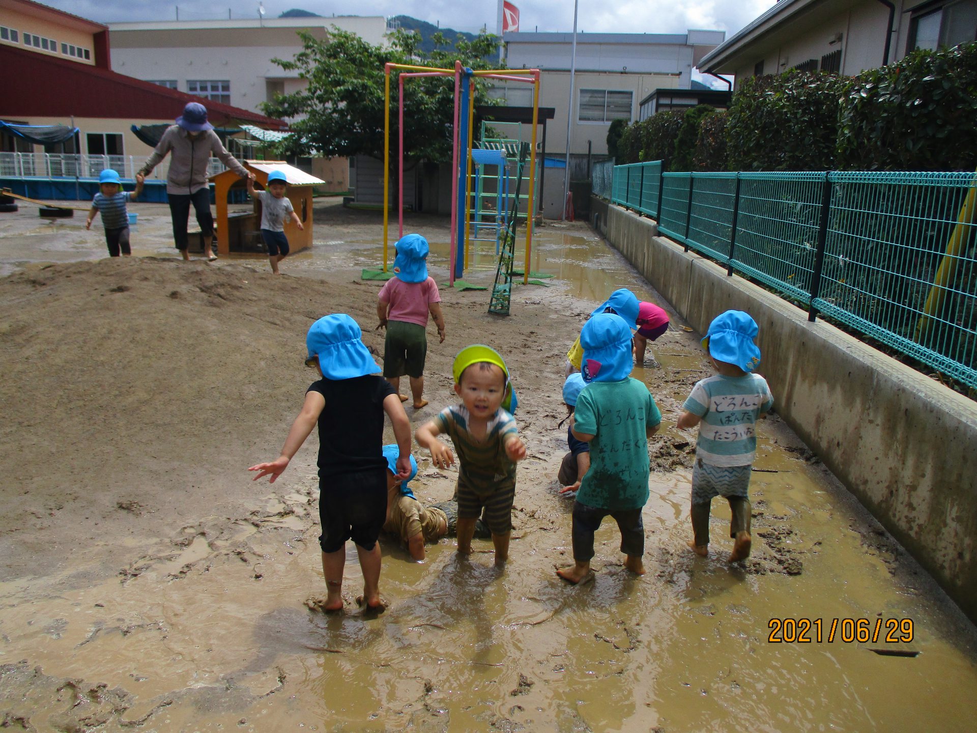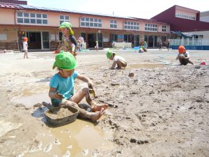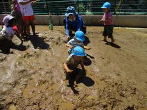 プールに入れない日は泥んこあそび。