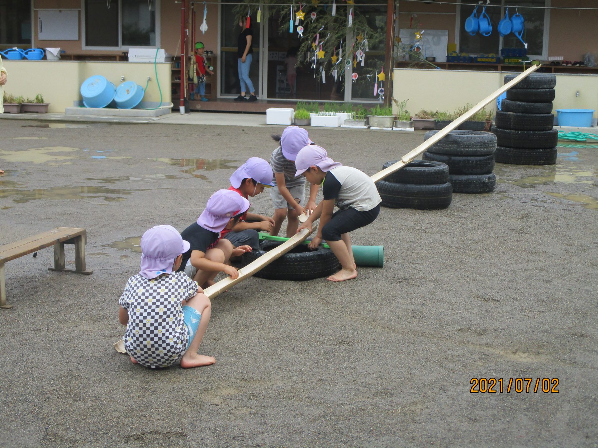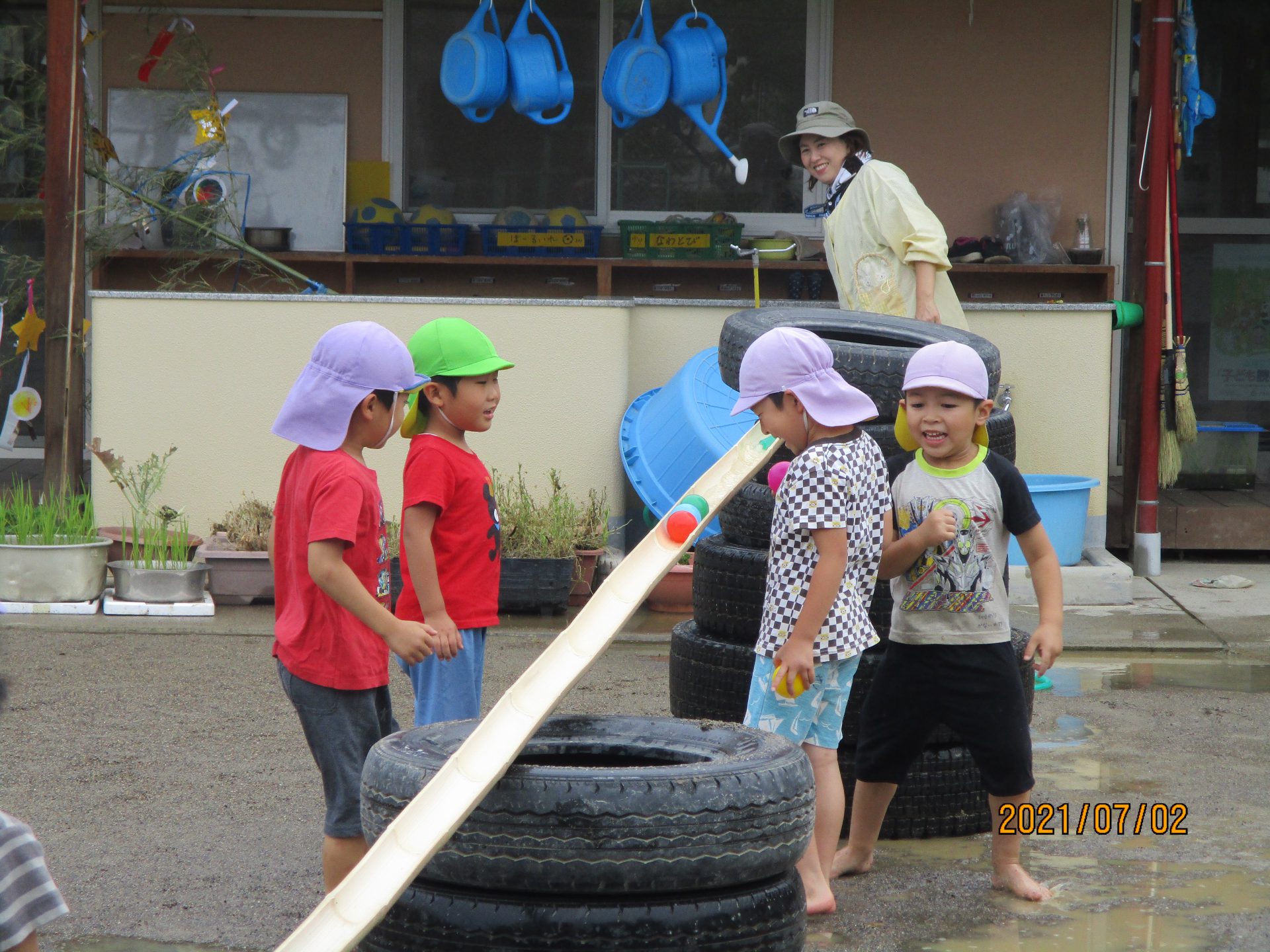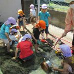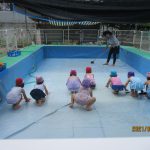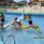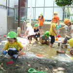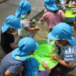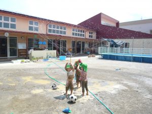 お天気の良い日はプールあそび。年長さん、お掃除ありがとう!