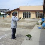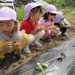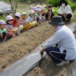 園長先生から苗の扱い方・植え方を教わってさつま芋の苗も植えたよ。
