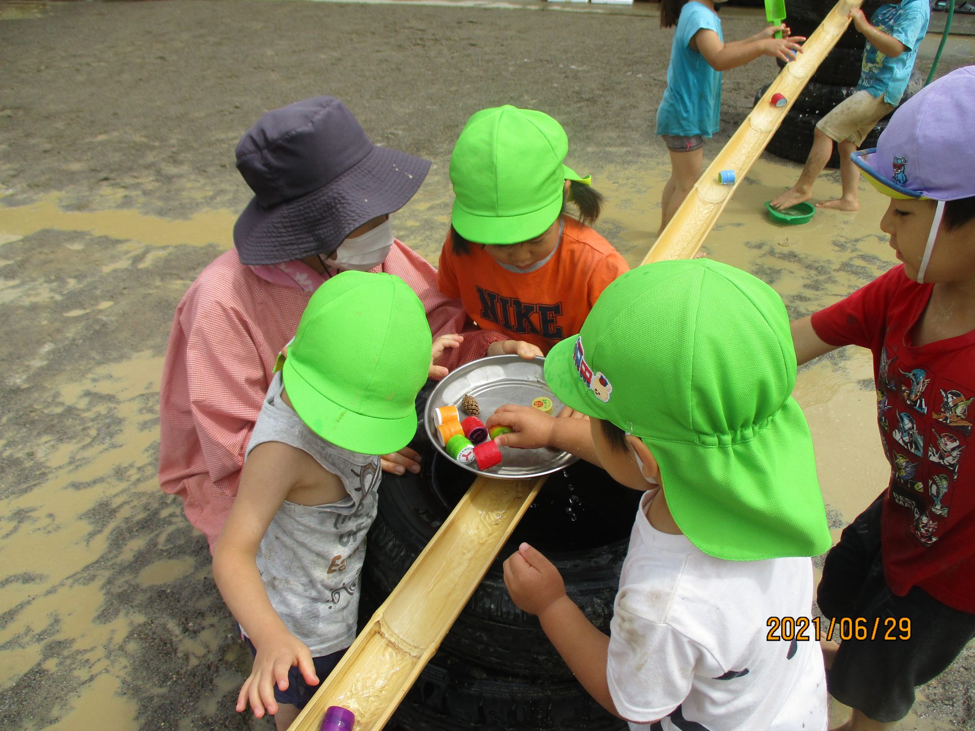水・泥の遊びは無限ですね。