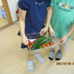 採れた野菜は給食に入れてもらい、みんなでおいしくいただきました。
