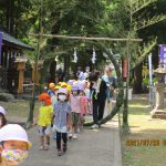 7月の末に、園の近くの墨坂神社夏越大祓式にご招待いただき、無病息災と延命長寿をお願いし、茅の輪をくぐりました。