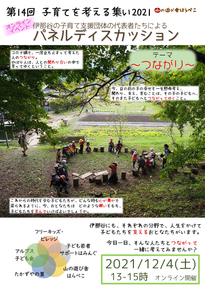 今回は伊那谷の子育て支援団体の代表者のみなさんが会し『つながり』をテーマにパネルディスカッションを行います。