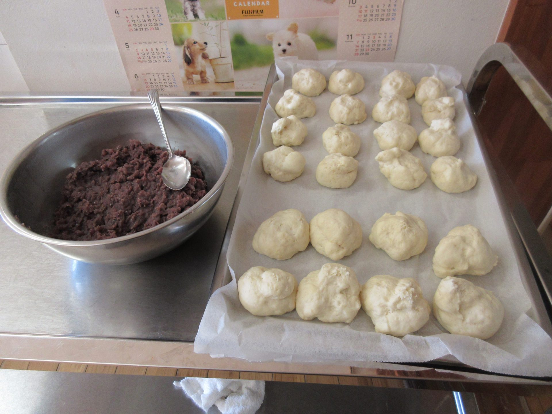 作り方をみながら自分でやってみよう!生地をおせんべいのように平らにしてあんこをのせて包みます