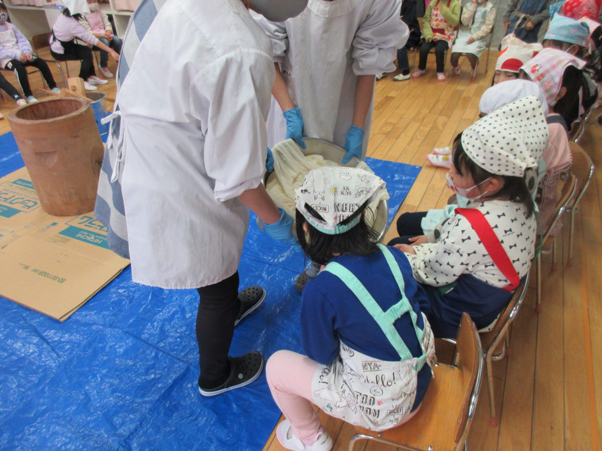 年長さんが畑で作って12月に漬けたたくあんを添えていただきます