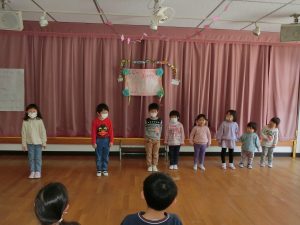 年中さん、年少さん、ひよこさんが歌のプレゼントをしてくれました♫