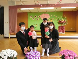 お兄さん、お姉さん、先生たちにお祝いしてもらいちょっぴり恥ずかしそうな表情でしたが、ボンボンを持って嬉しそう♡