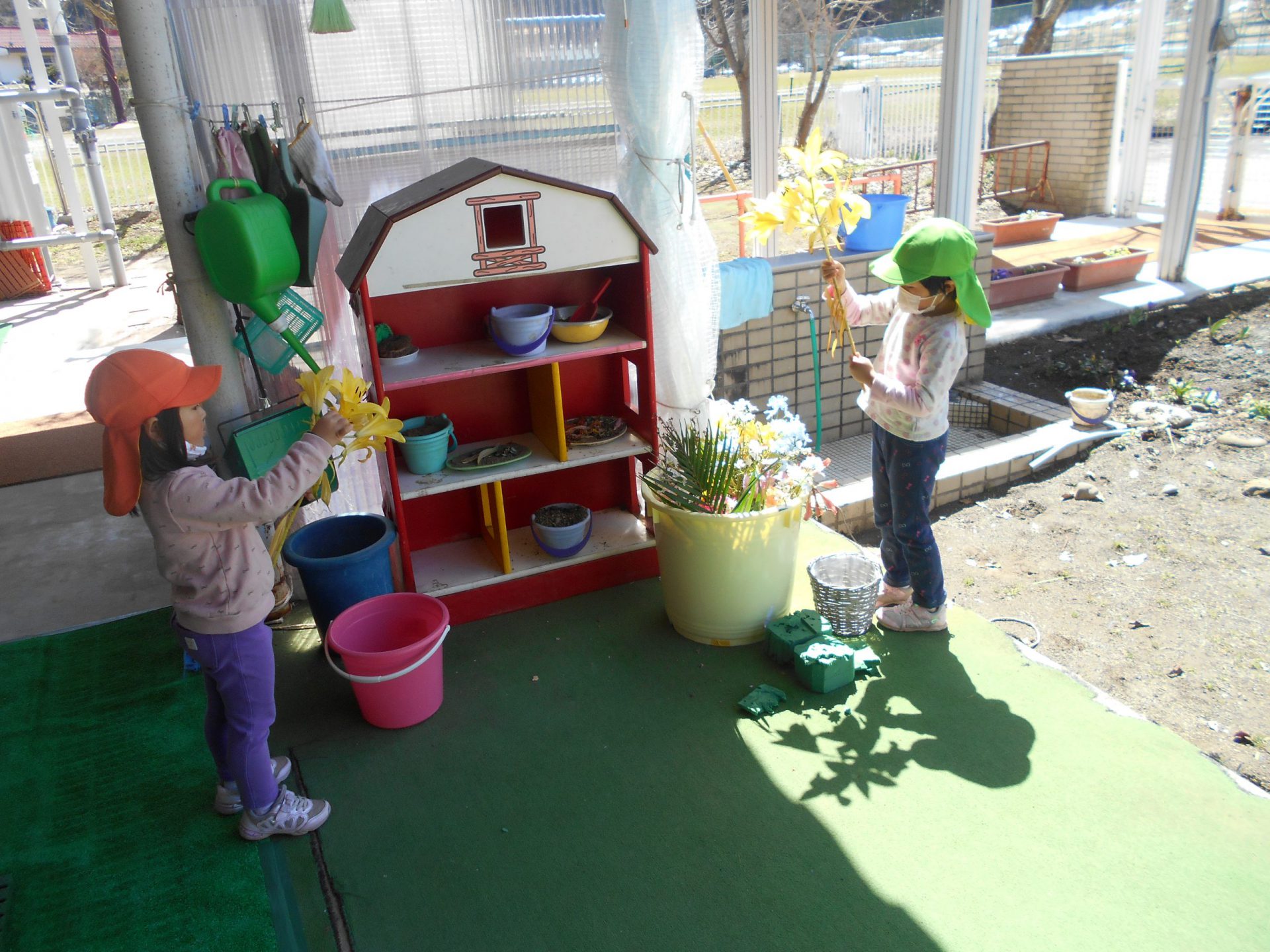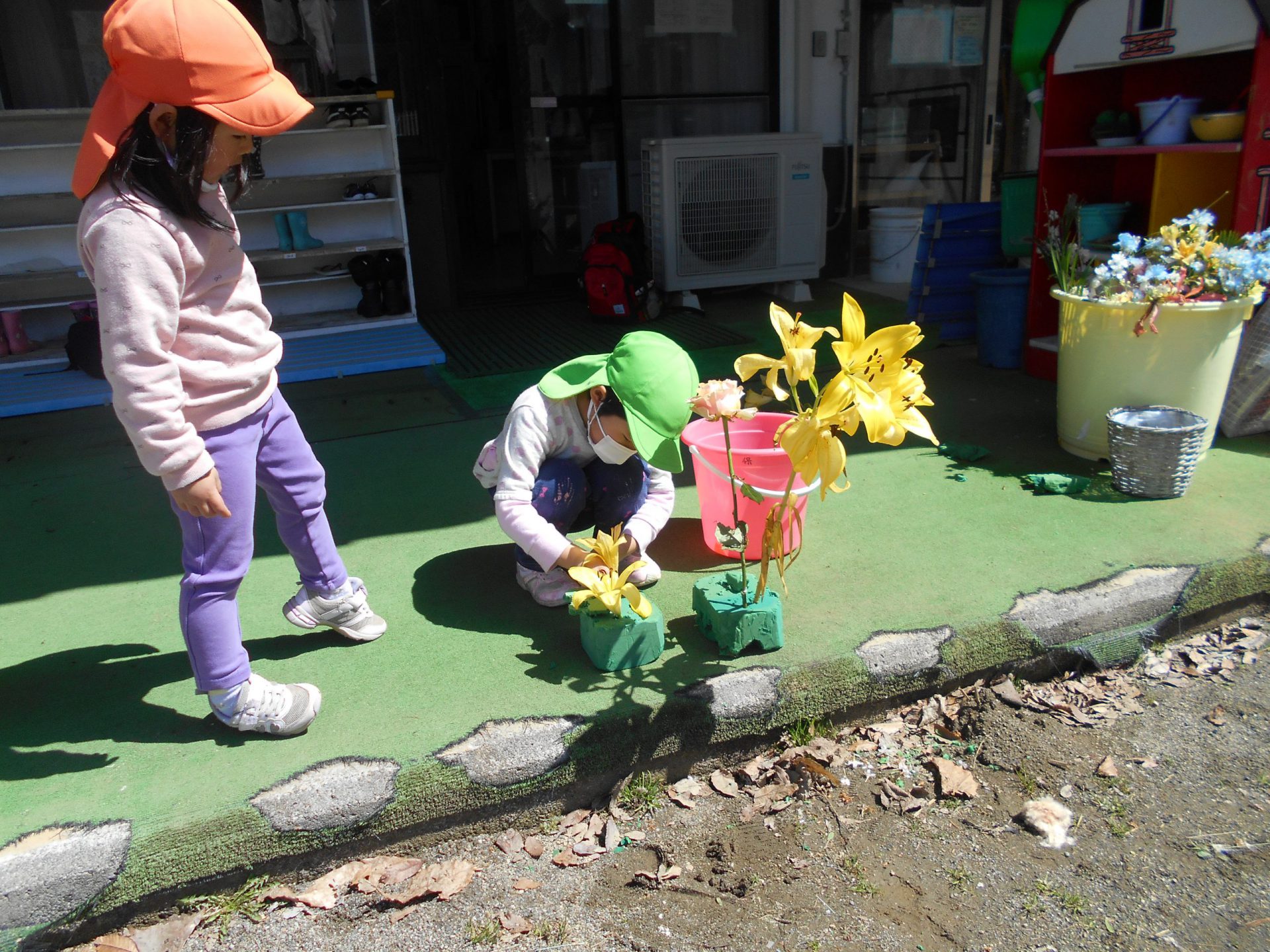 「まあ、ステキなお花だわ♡」 「先生、これつかっていい?」