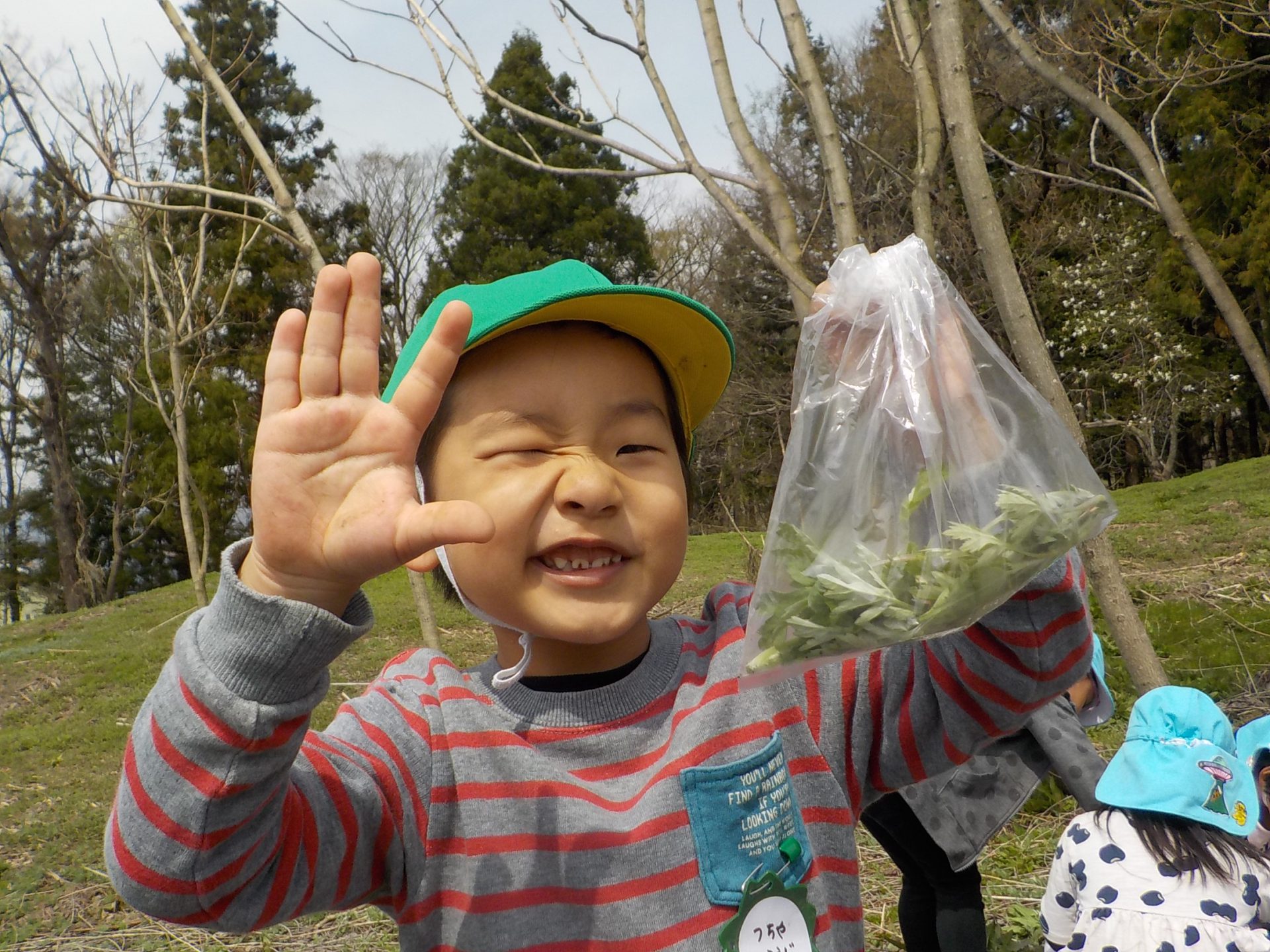「先生、ヨモギ取って来たよ!ヨモギ団子作ろうね!!」