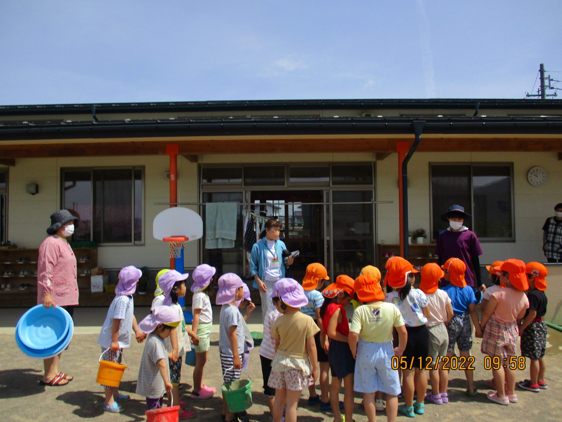 田んぼに着いてから、園長先生から約束事のお話を聞きました。