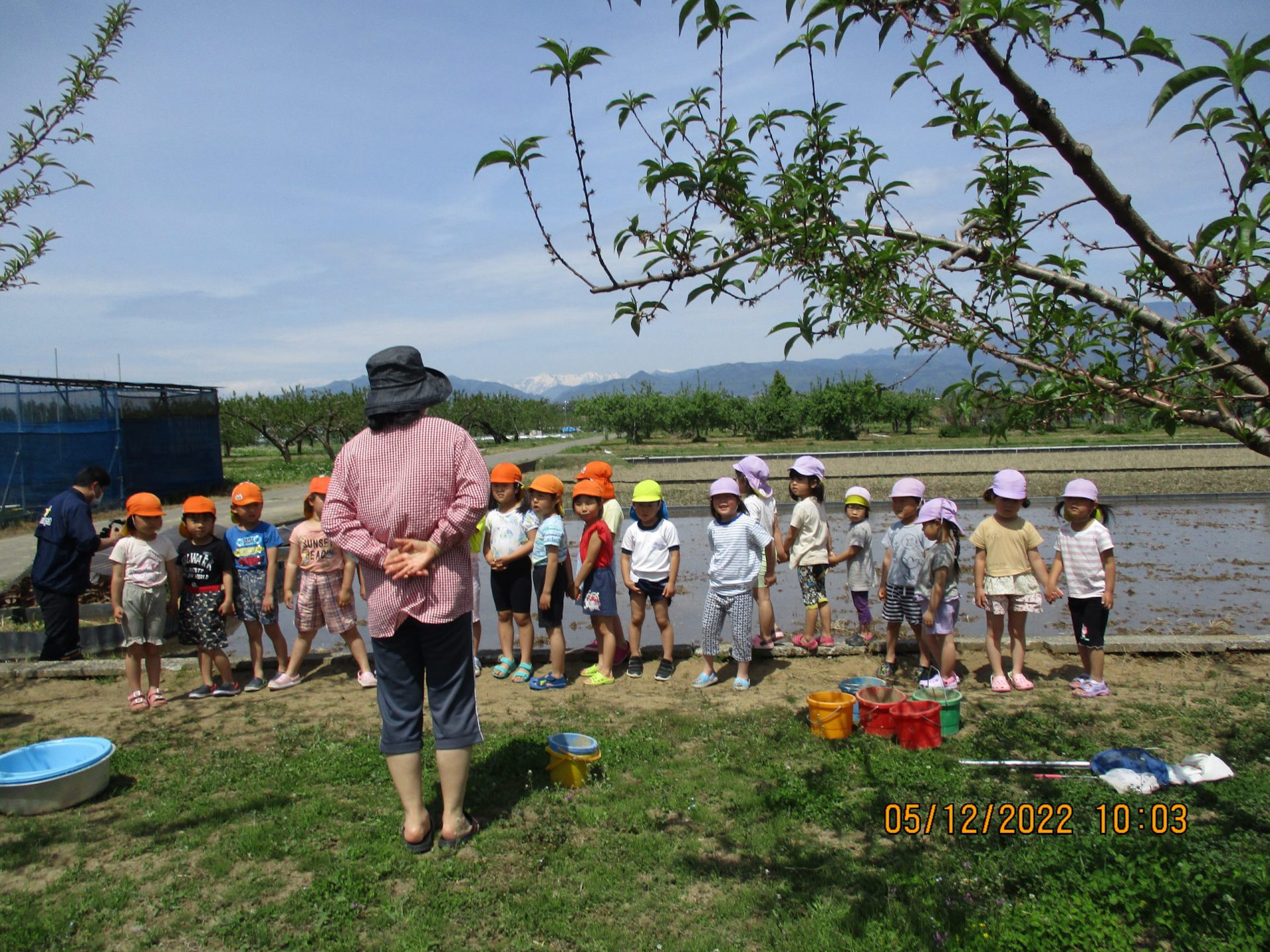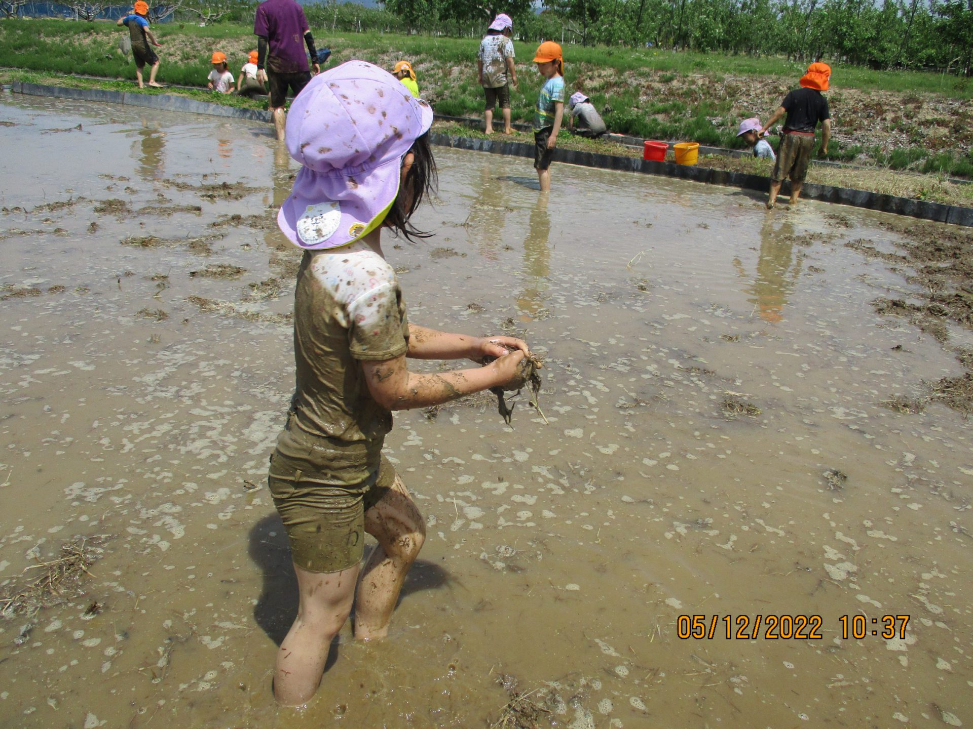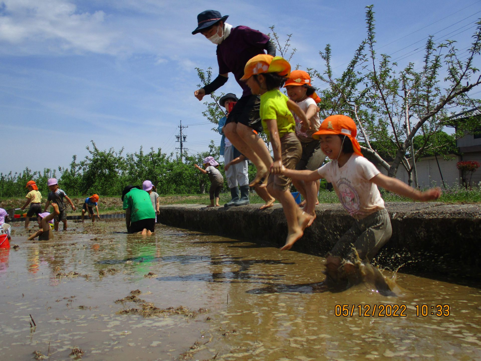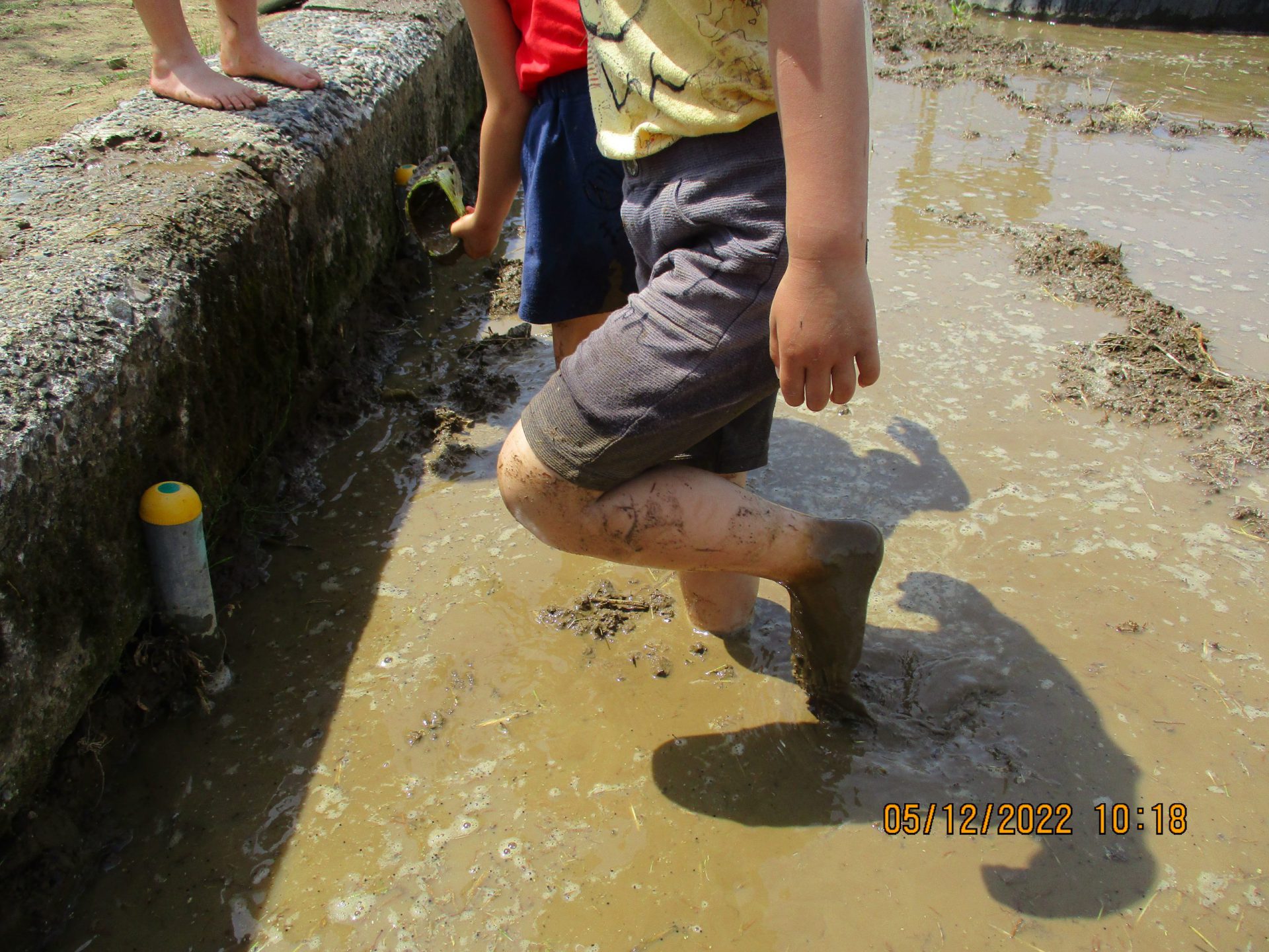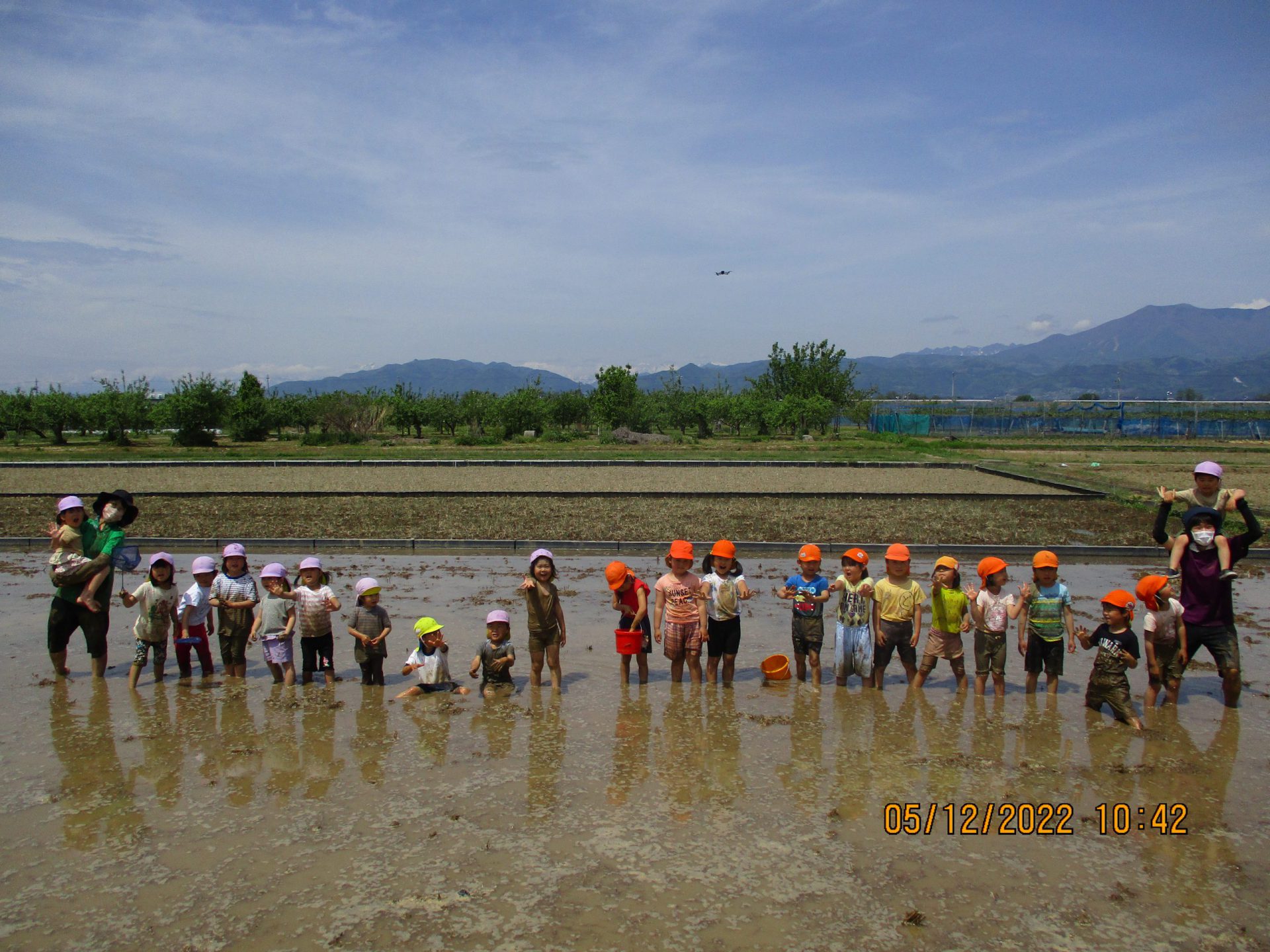 その田んぼで、千曲保育園の年長・年中さんが田植え前に泥んこあそびをさせてもらえることになりました。