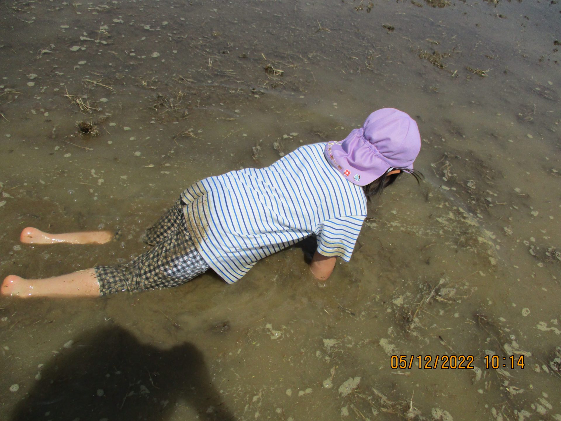 アメンボ探しに夢中になる子や泥温泉を楽しむ子、ワニになって泳ぐ子もいました。