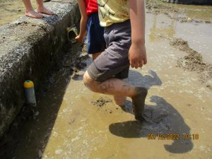 最初はドキドキしていた子も、泥の感触を楽しみ、全身で楽しみました。泥んこ着もすっかり泥だらけ(^◇^)