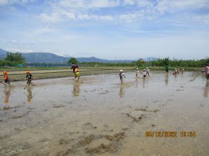 地域公民館の事業で、須坂市立井上小学校の5年生が田植えから稲刈りまでをして、お米を育てています。