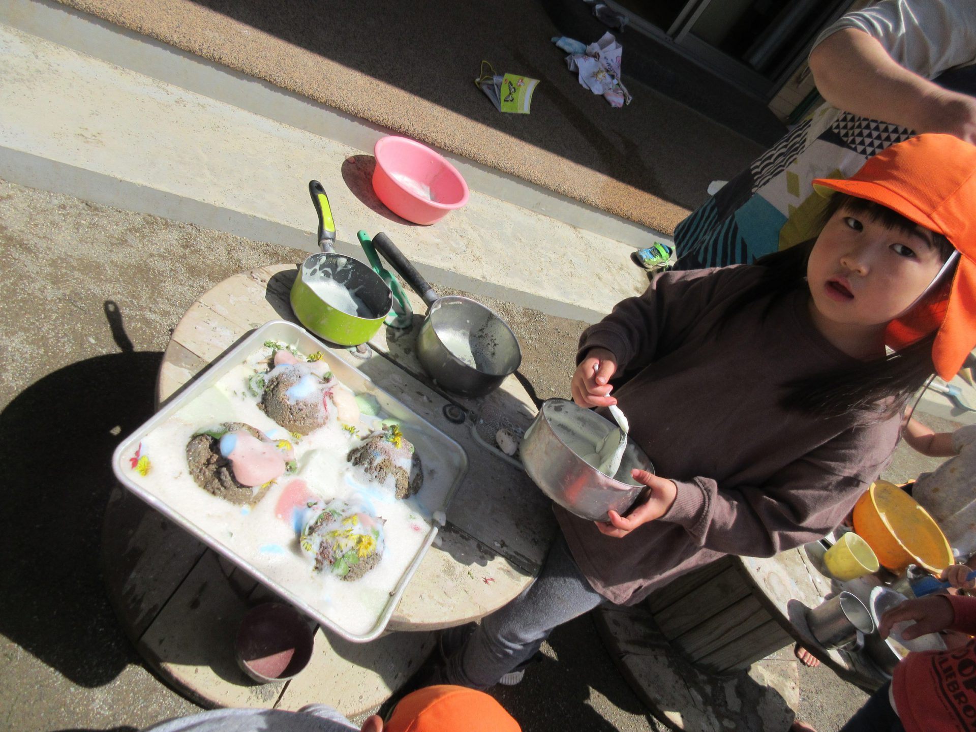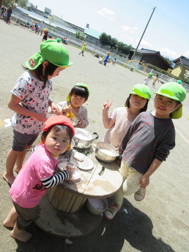 新年度がスタート広い庭で早速泡作りがはじまりました